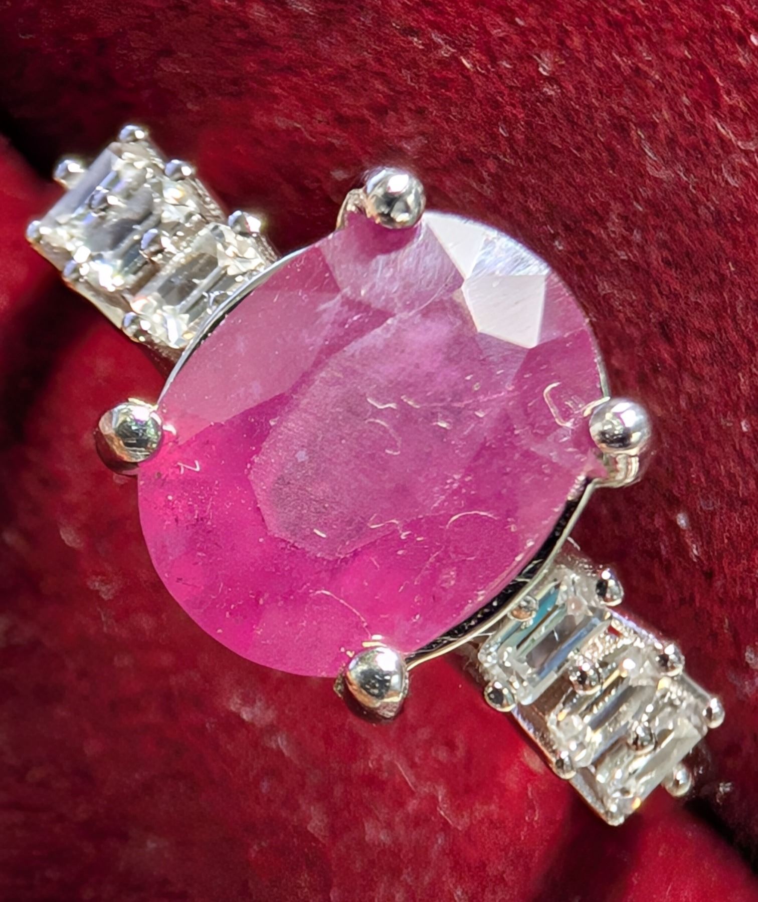 SILVER 3.5G RUBY 2.5CT SIZE 7 RING