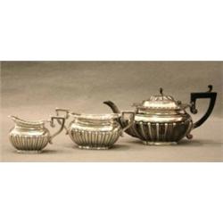 TESERVIS, 3 DELAR, KANNA, SOCKERSKÅL, GRÄDDKANNA, KANNAN MED GODRONNERAT LIV, UPPSVÄNGD SVÄRTAD TRÄHÄNKEL, SVÄNGD PIP, CHESTER, ENGLAND 1896, KANNAN H13 (3)
