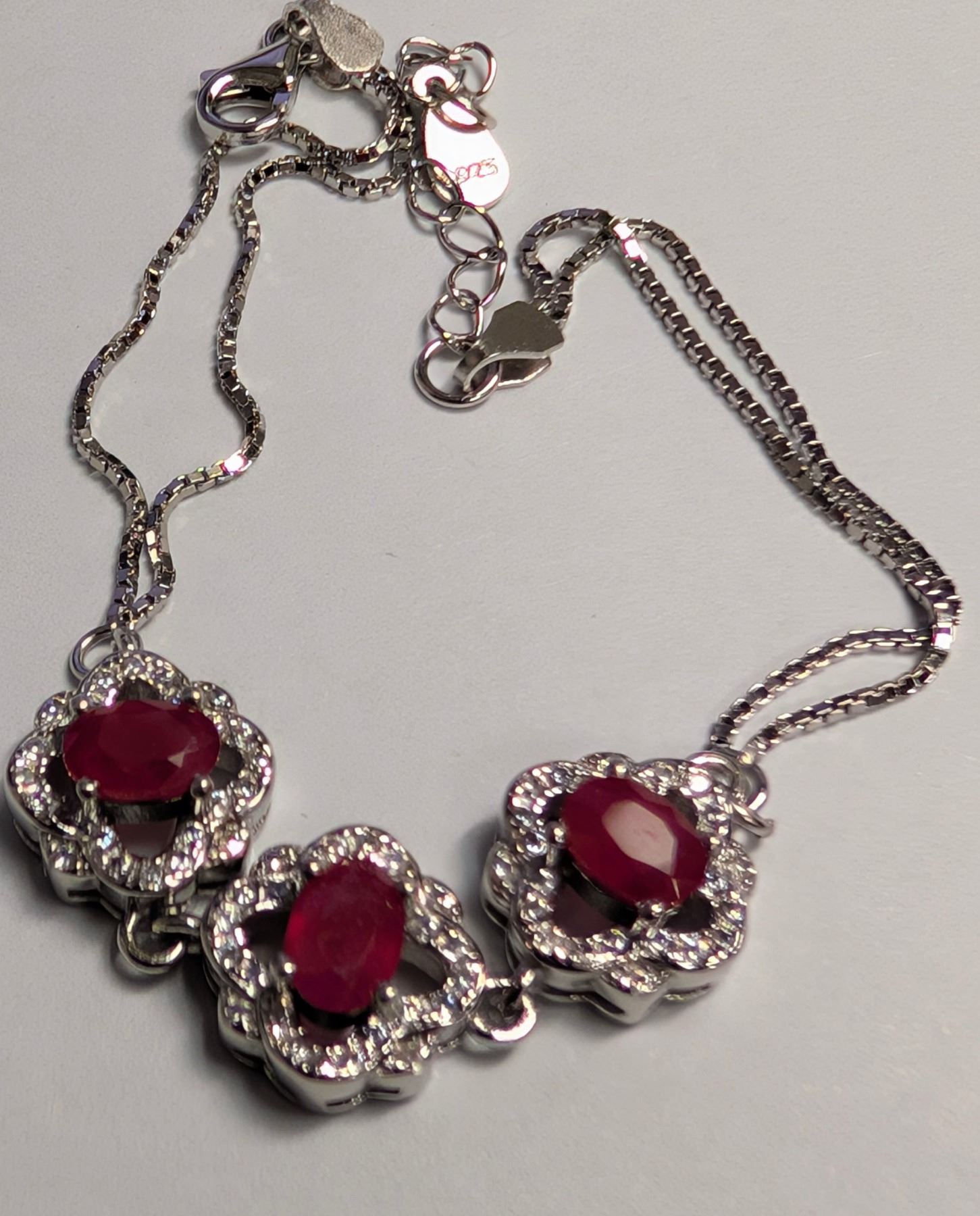 SILVER 5.5G RUBY 1.5CT BRACELET 7"