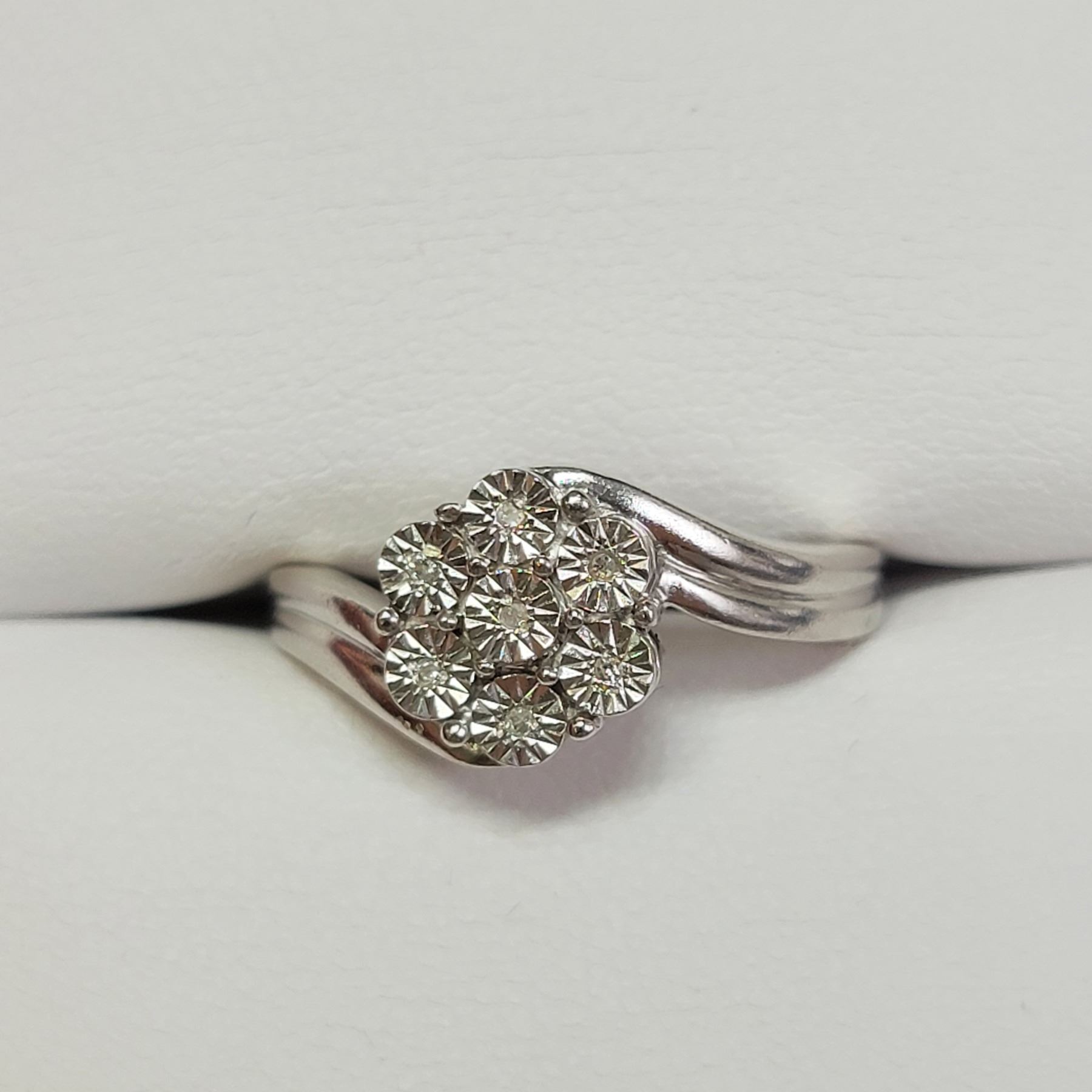 SILVER 7 DIAMONDS RING (~SIZE 7)
