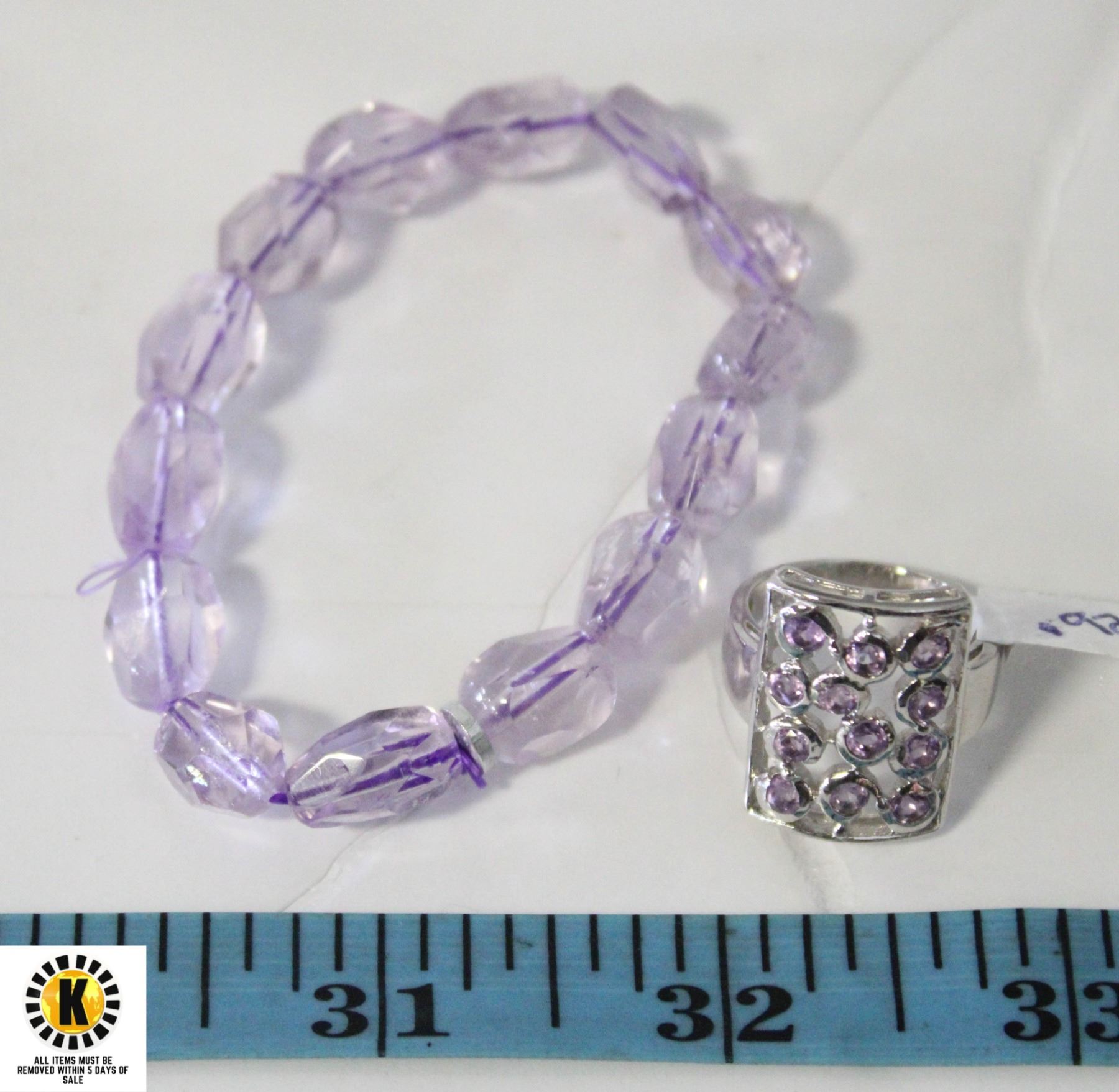 SILVER .925 PURPLE STONE RING (7), BRACELET