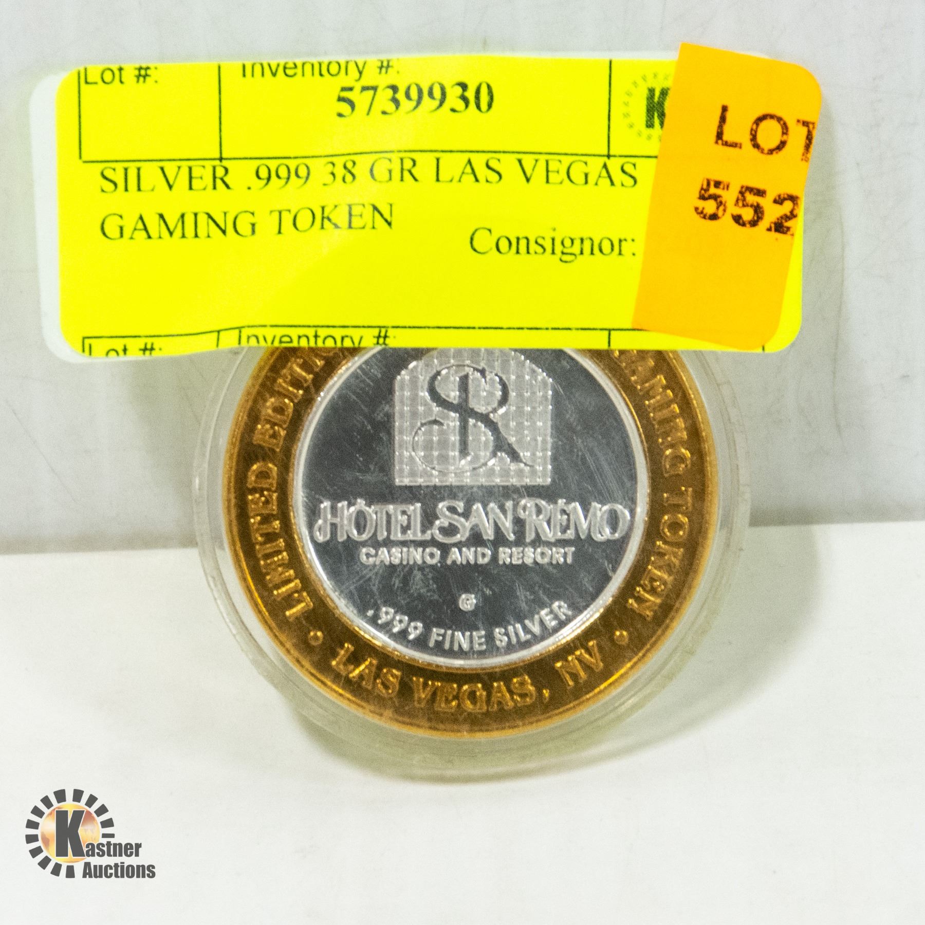 SILVER .999 38 GR LAS VEGAS GAMING TOKEN