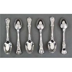 SILVER - A set of six mid-Victorian Kings shape Coburg pattern dessert spoons, A set of six mid-V...