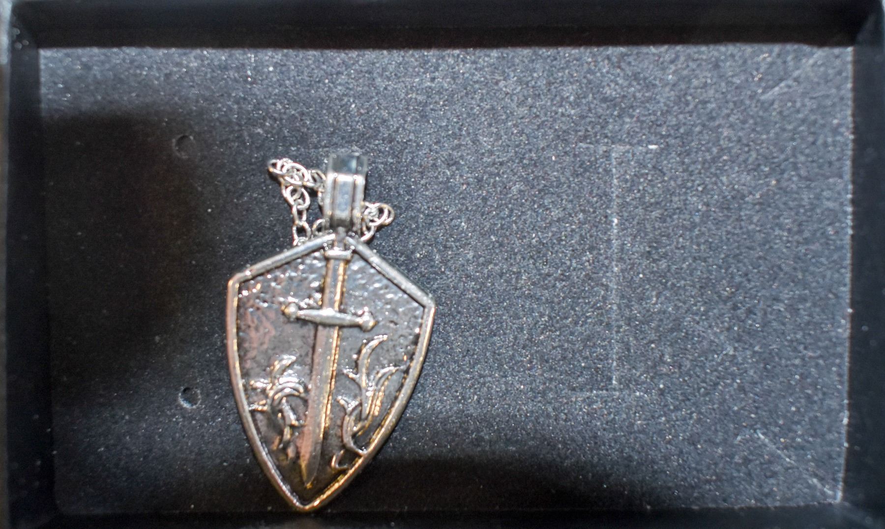 SILVER ALLOY MENS "SHIELD AND SWORD" PENDANT