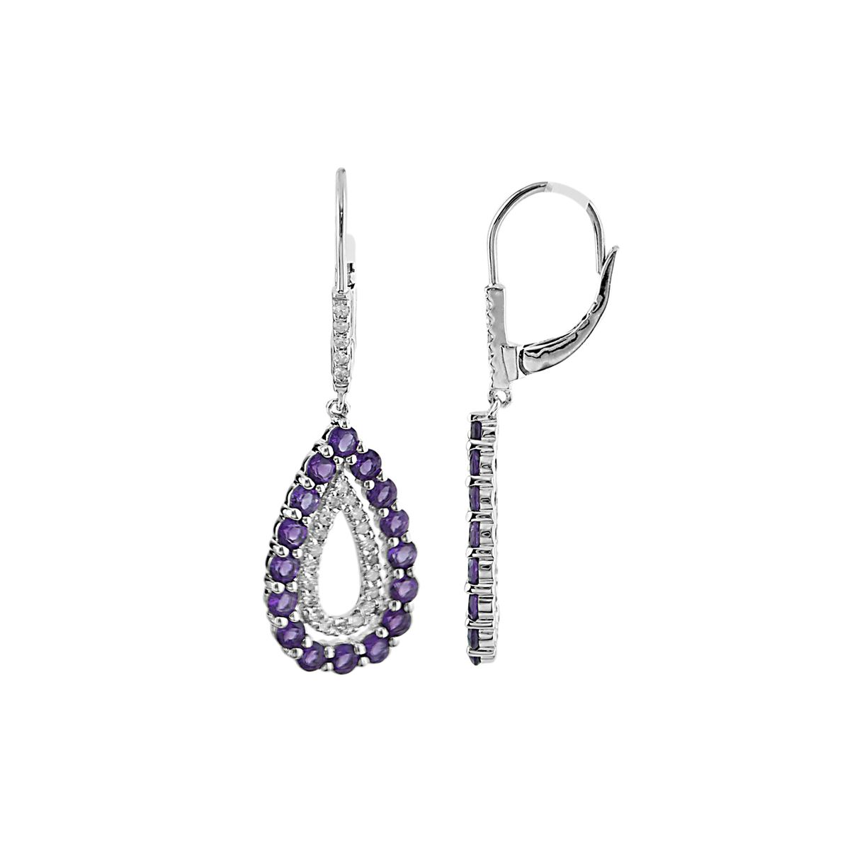 SILVER AMETHYST / DIAMOND LEVERBACK EARRINGS (#7012A) TOTAL CT WEIGHT 1.76