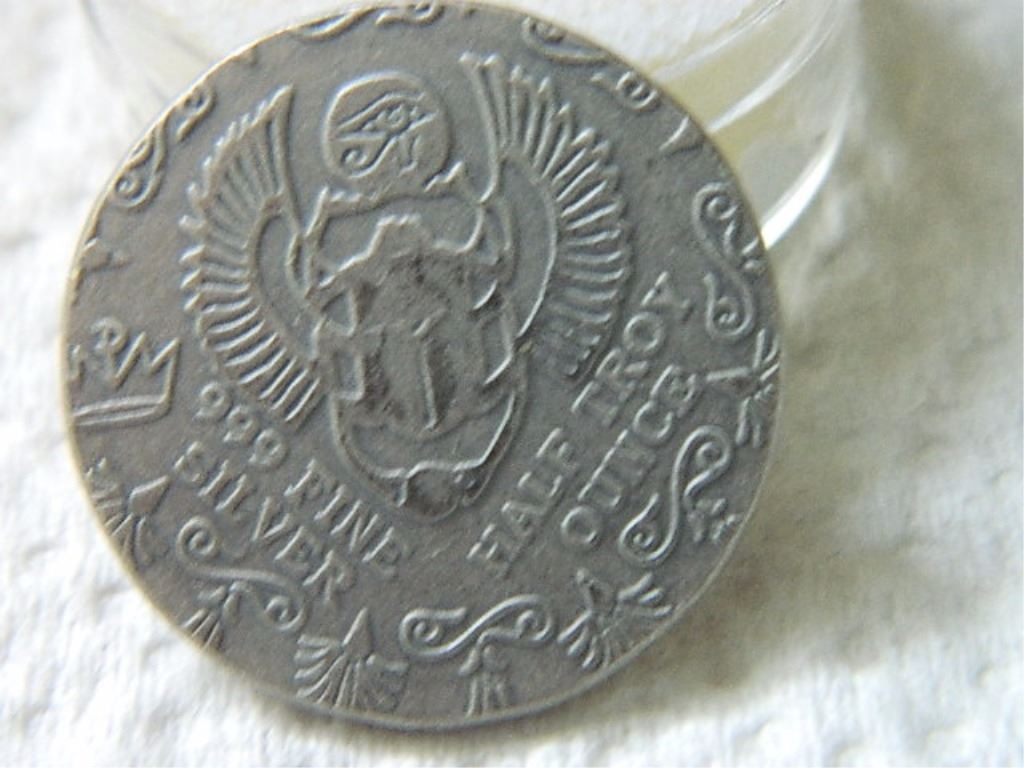 SILVER ART ROUND -.999 FINE , EGYPTIAN ENCRYPTIONS MOTIFS, - 1/2 troy ounce