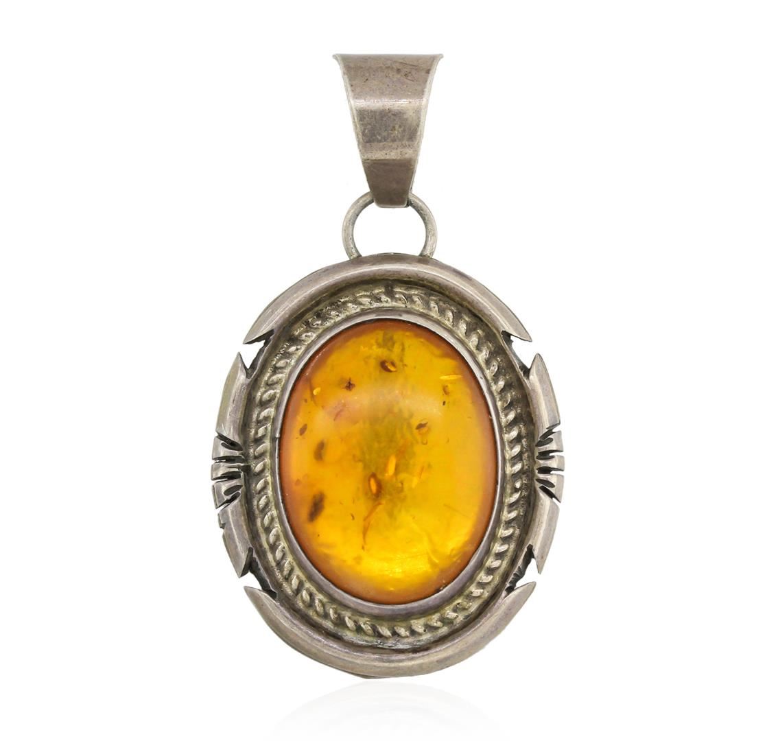 This is a Navajo pendant by designer Jon McCray. It is Sterling Silver with an Amber Cabochon. Stunning Native American Jewelry collectible. Approx. measurements: 2" Long x 1.20" Wide. Handmade! One of a kind!