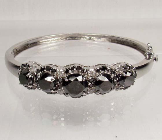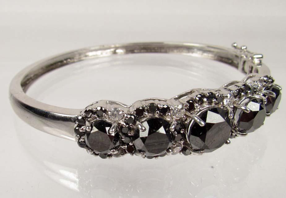 SILVER BLACK AND WHITE DIAMOND BRACELET - 7" LONG - Comes w/ GLA Appraisal of $36,687.00. 5 larger round cut Black Diamonds and 46 smaller round cut Black Diamonds. 8 round full cut Diamonds. Diamonds 15.51ct., Total Weight 16.30 grams.
