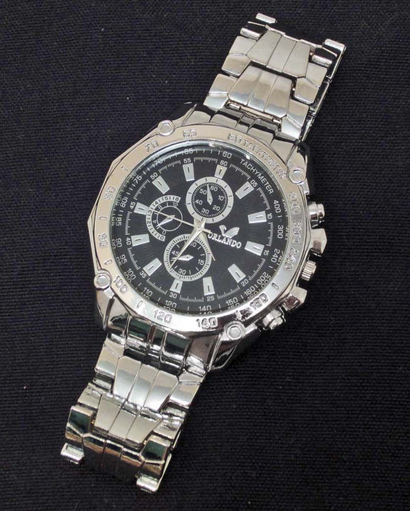 SILVER & BLACK FACE ANALOG WRISTWATCH