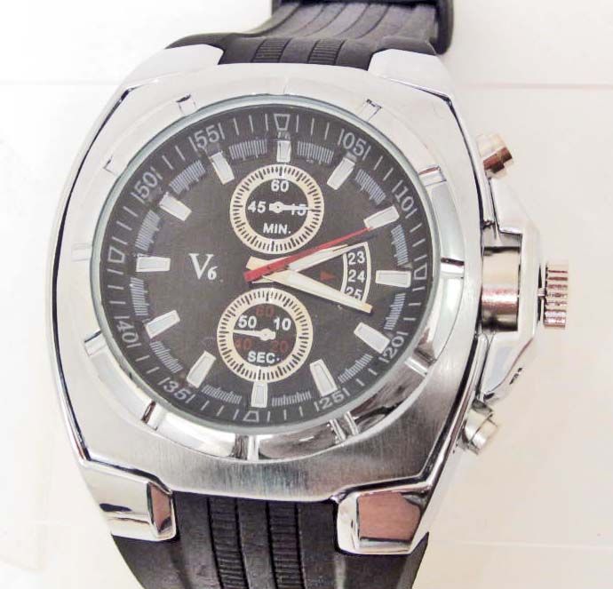 SILVER & BLACK FACE QUARTZ SPORTS WATCH