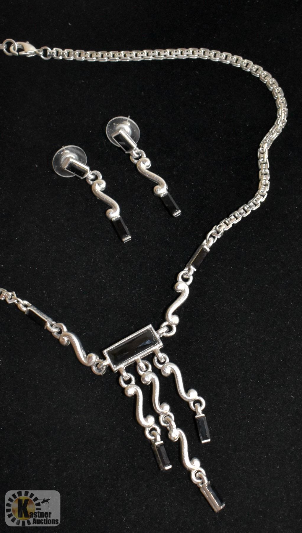ELEGANT MATTE SILVER & BLACK ONYX NECKLACE & EARRING SET