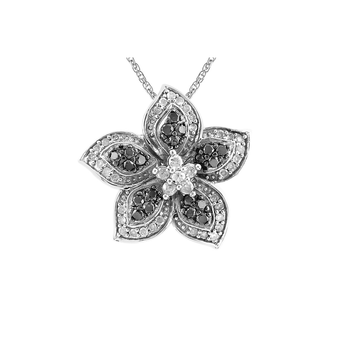 SILVER BLACK / WHITE DIAMOND FLOWER PENDANT (#8522D-WHTBLK) TOTAL CT WEIGHT