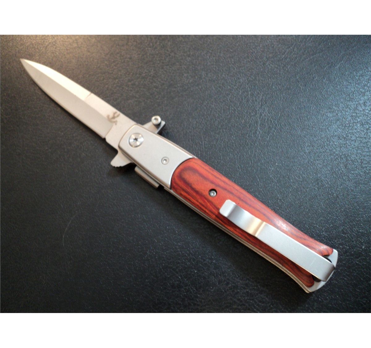 SILVER BLADE WOOD HANDLE STILETTO KNIFE