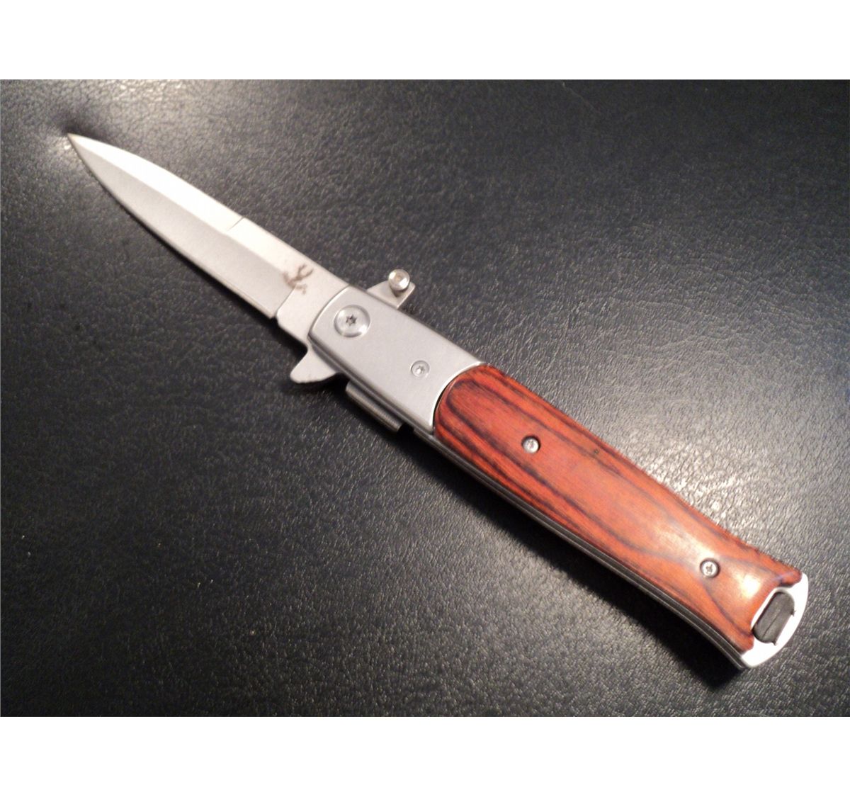SILVER BLADE WOOD HANDLE STILETTO KNIFE