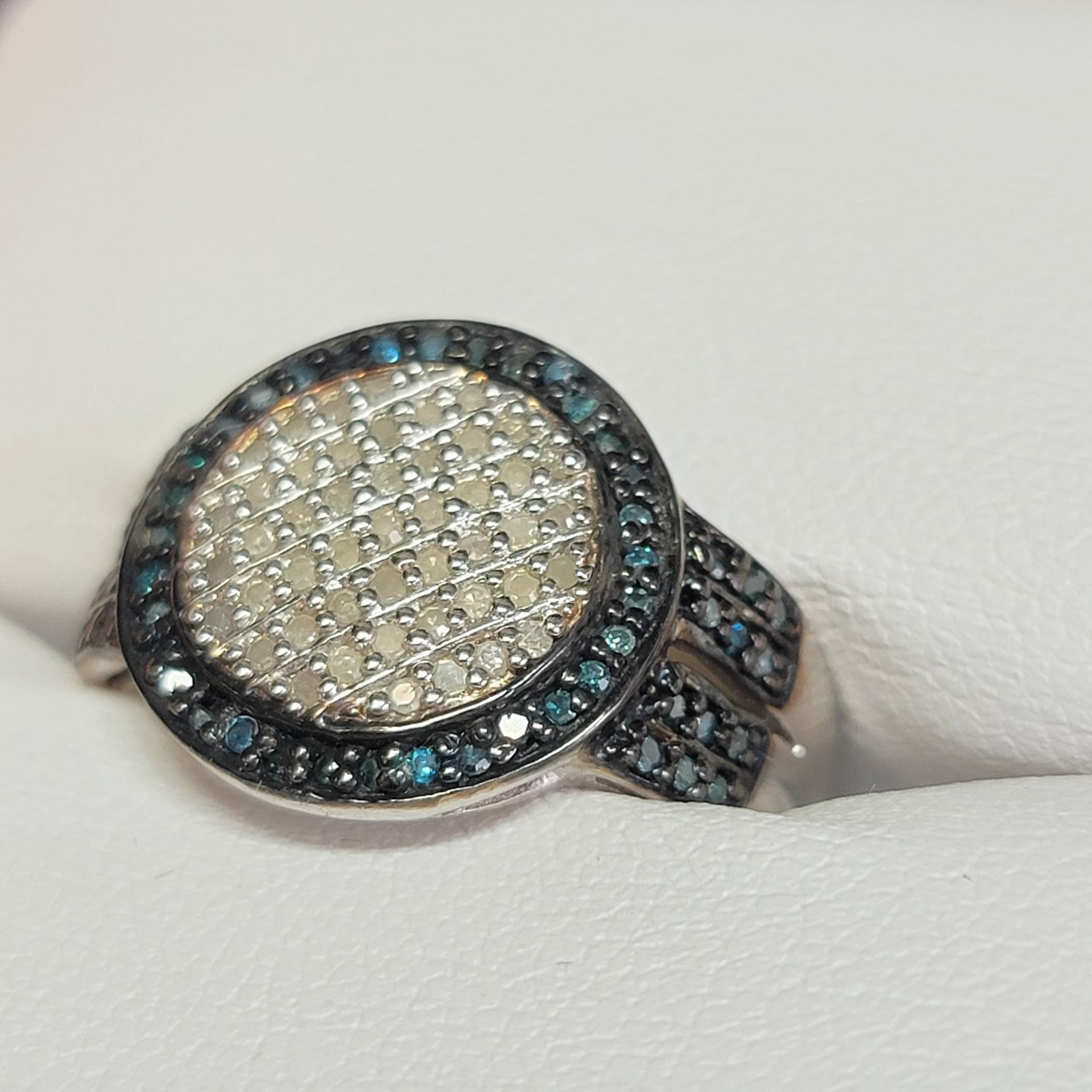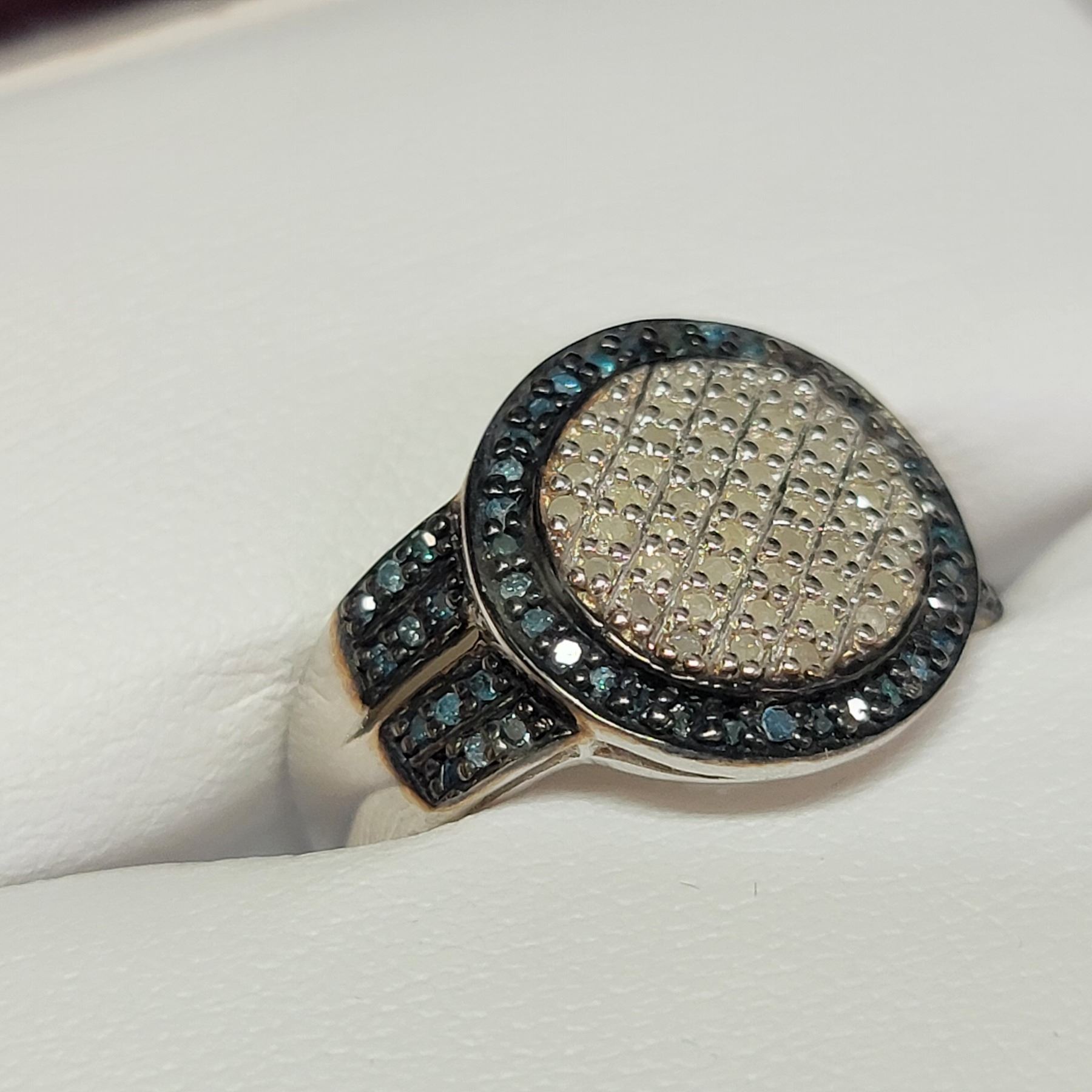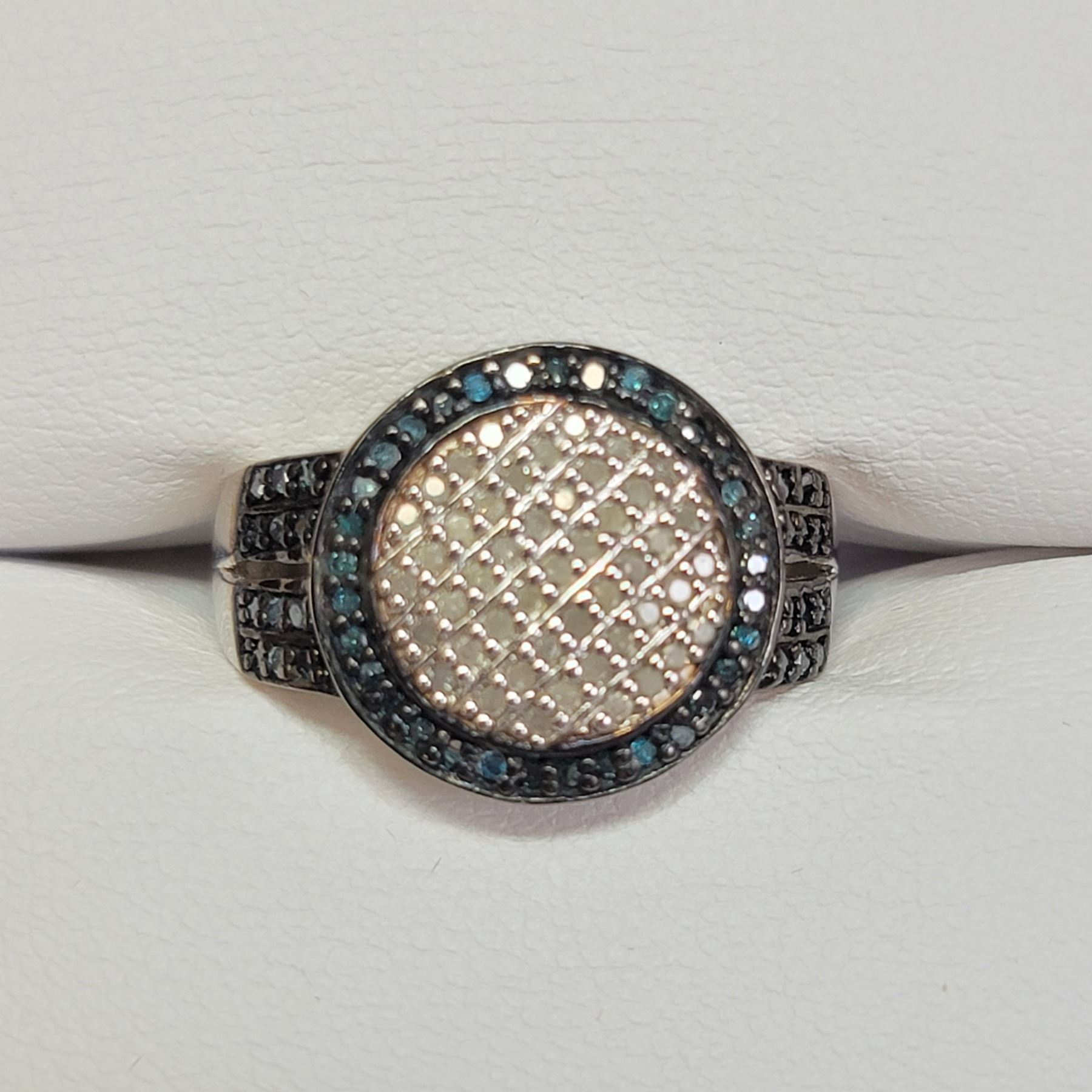 SILVER BLUE DIAMOND, WHITE DIAMOND(0.4CT) RING