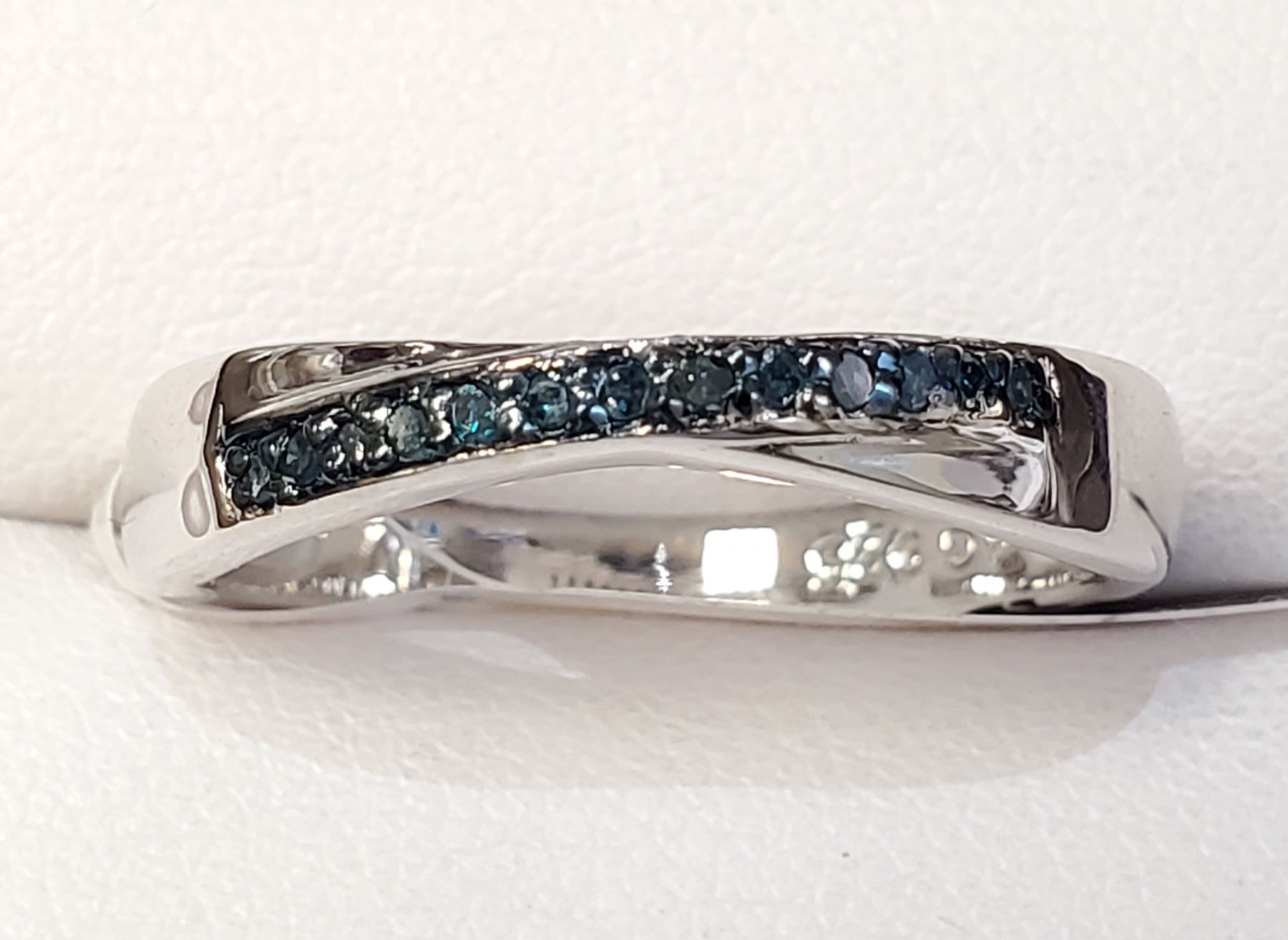 SILVER BLUE DIAMONDS(0.12CT)  RING (~SIZE 5)