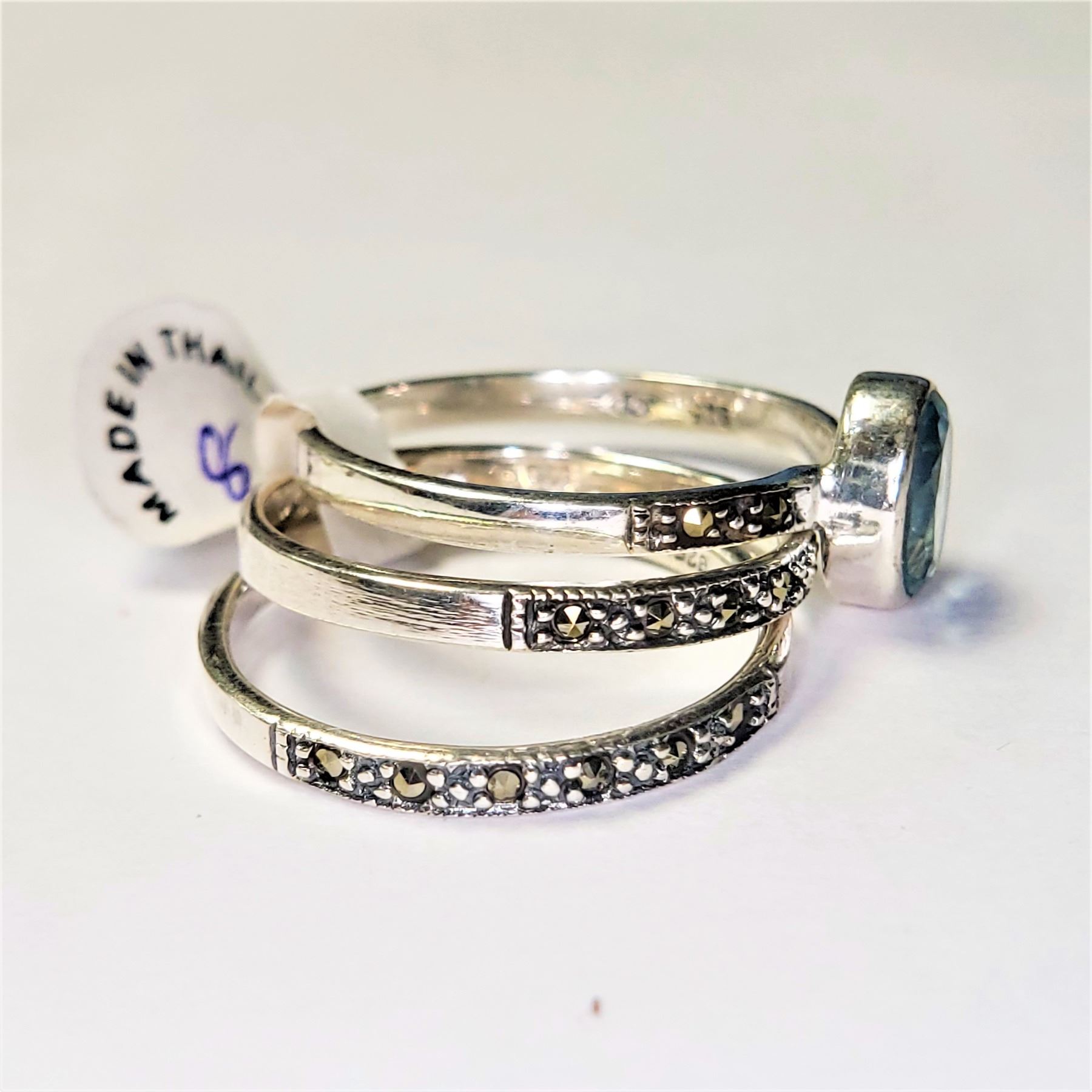 SILVER BLUE TOPAZ AND MARCASITE SET (~SIZE 8)