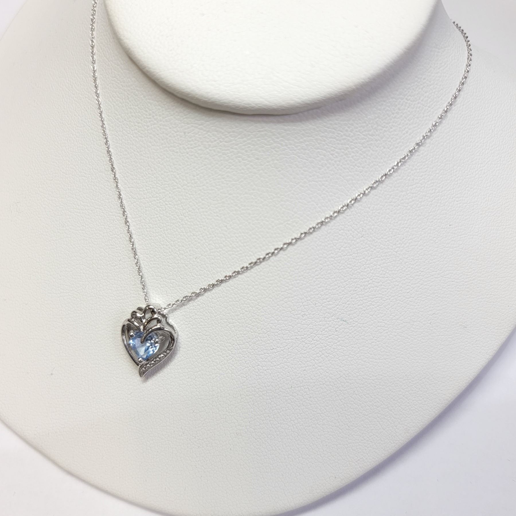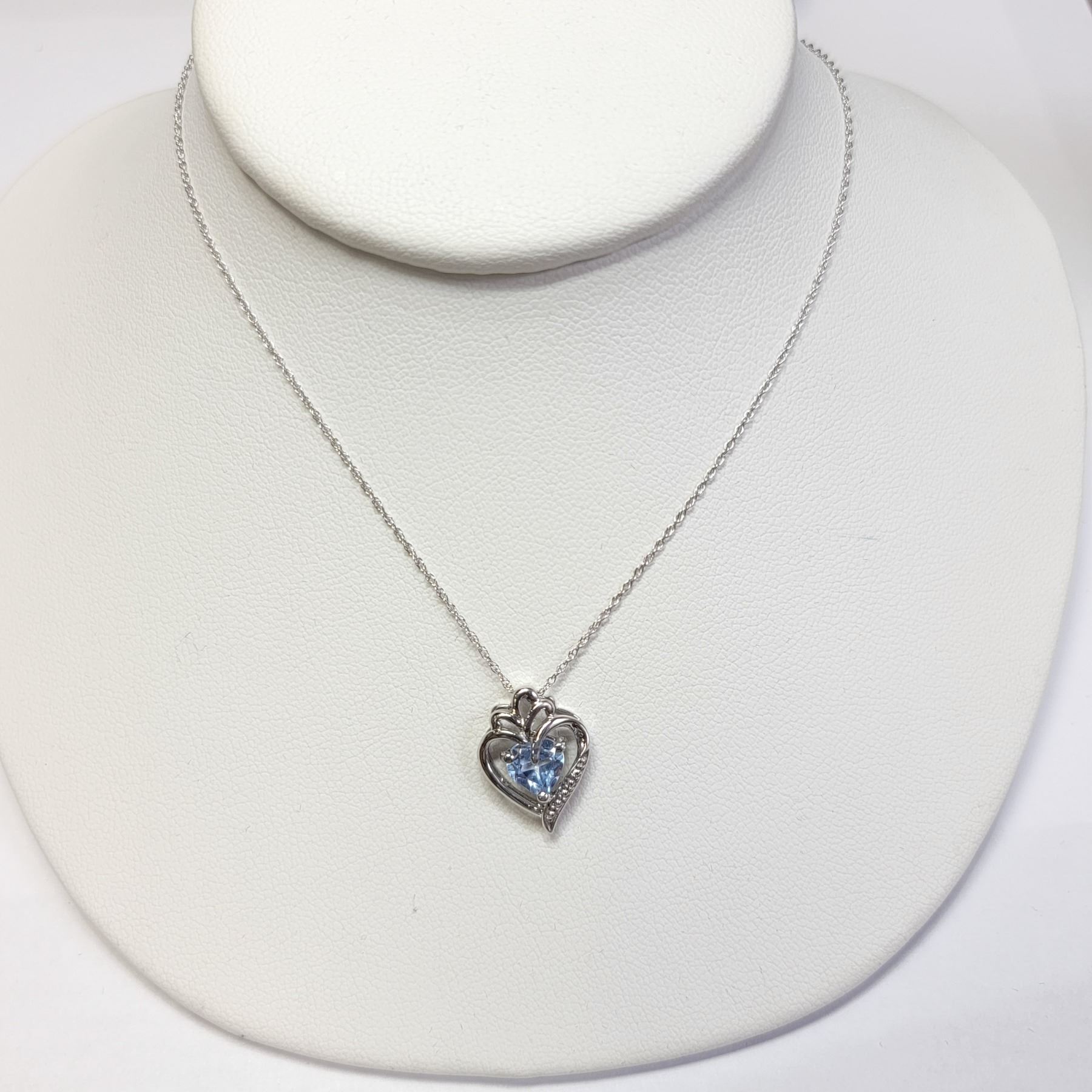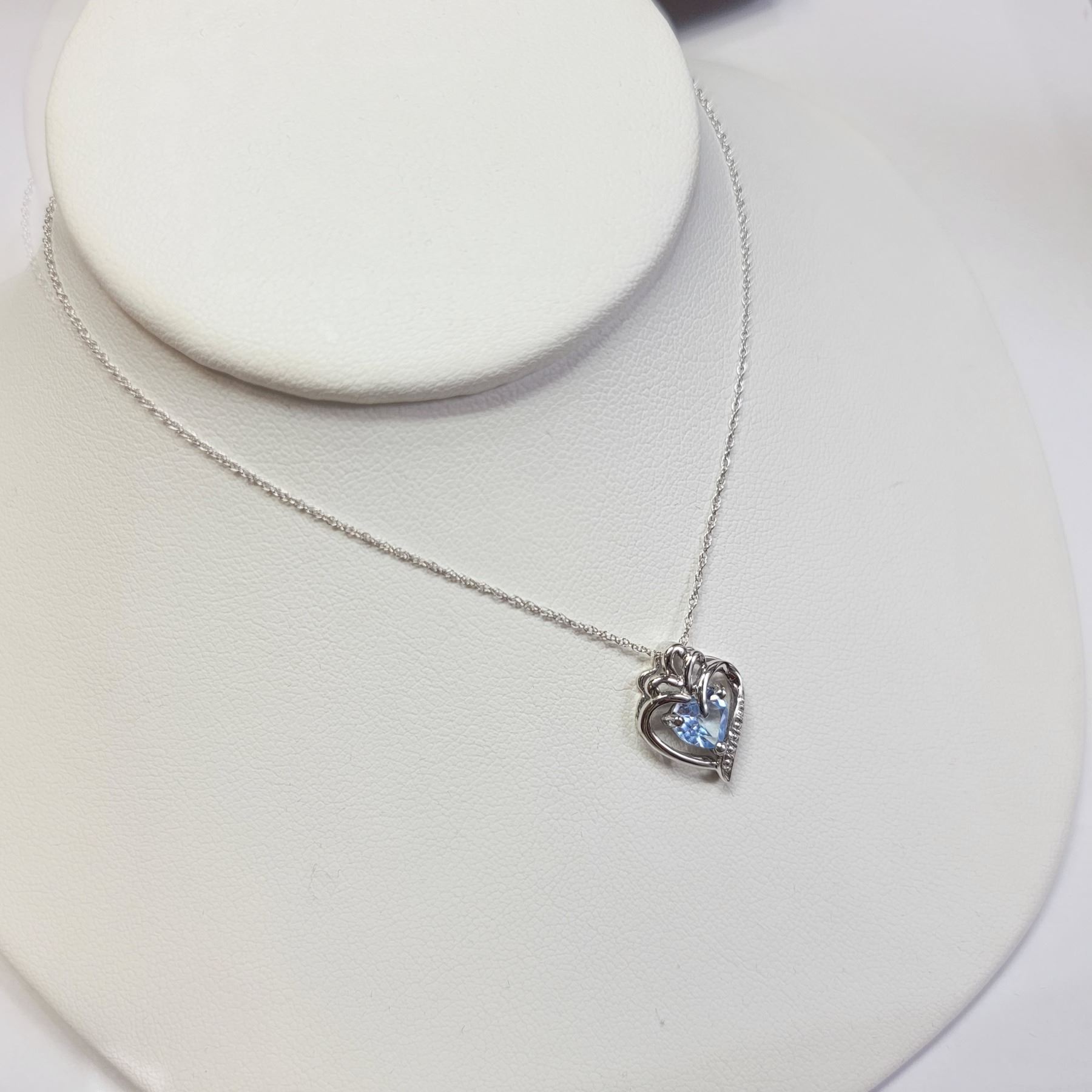 SILVER BLUE TOPAZ,CZ HEART SHAPE NECKLACE