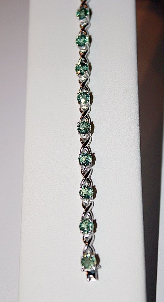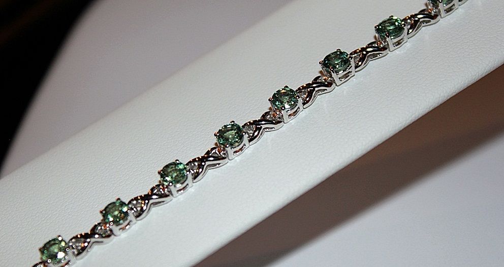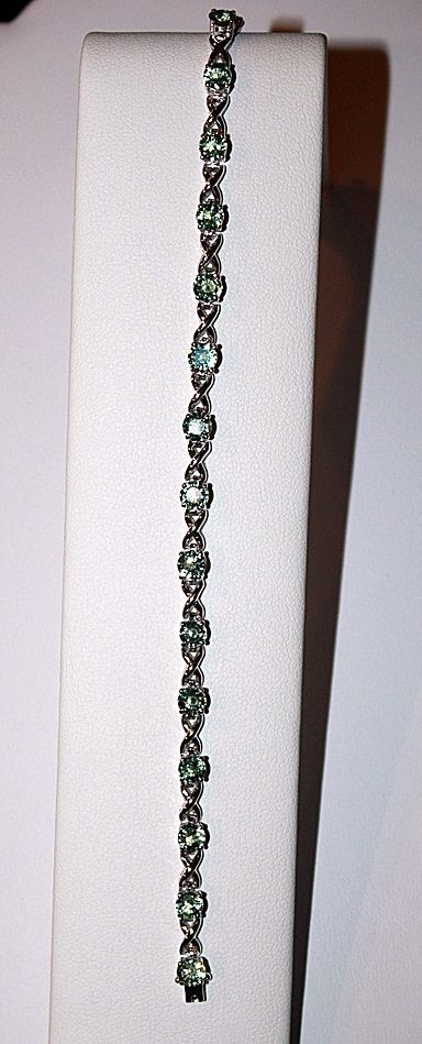 SILVER BRACELET WITH 16 GREEN SAPPHIRES. GREEN SAPPHIRE: 6.48CTW SILVER: 7.10G. RETAIL PRICE $804.00.