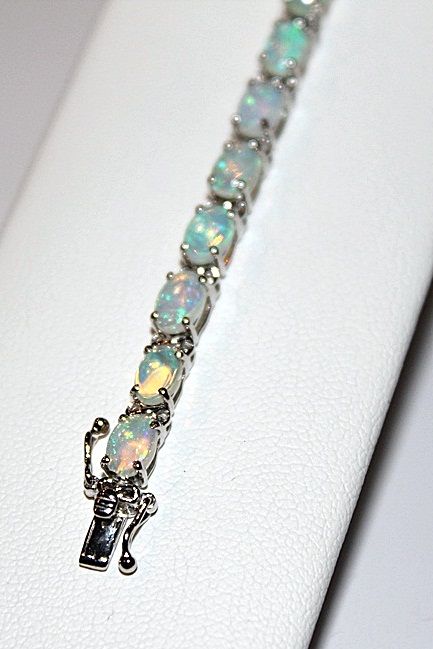 SILVER BRACELET WITH 24 OPALS. OPAL: 7.14CTW SILVER: 6.20G. RETAIL PRICE $1200.00.