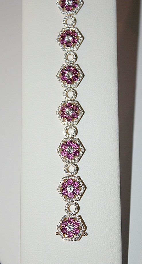 SILVER BRACELET WITH 443 WHITE SAPPHIRES AND 66 TOURMALINES. WHITE SAPPHIRE: 4.41CTW TOURMALINE: 6.11CTW SILVER: 11.10G. RETAIL PRICE $3768.00.