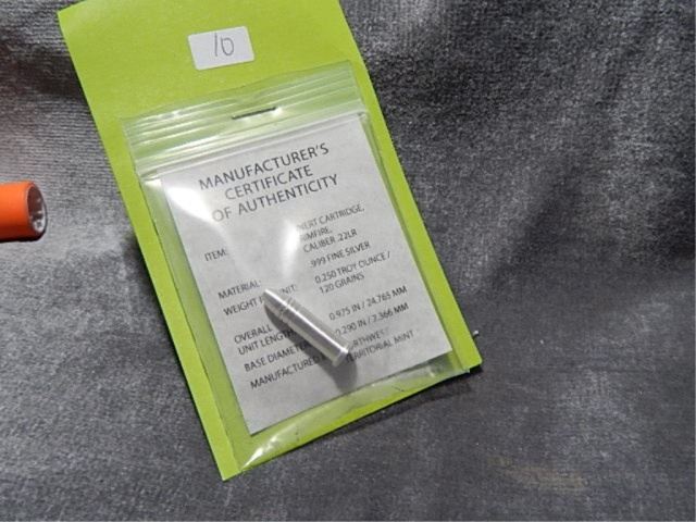 SILVER BULLET - .999 FINE SILVER - 22 CALIBER - INCLUDES CERIFICATE OF AUTHENTICITY