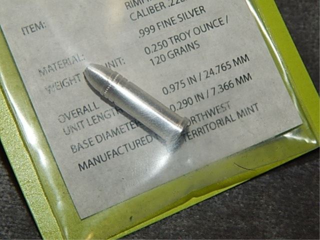 SILVER BULLET - .999 FINE SILVER - 22 CALIBER - INCLUDES CERIFICATE OF AUTHENTICITY