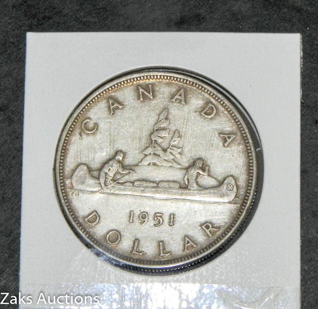SILVER CANADA 1951 KING GEORGE CANADA $1 ONE DOLLAR COIN