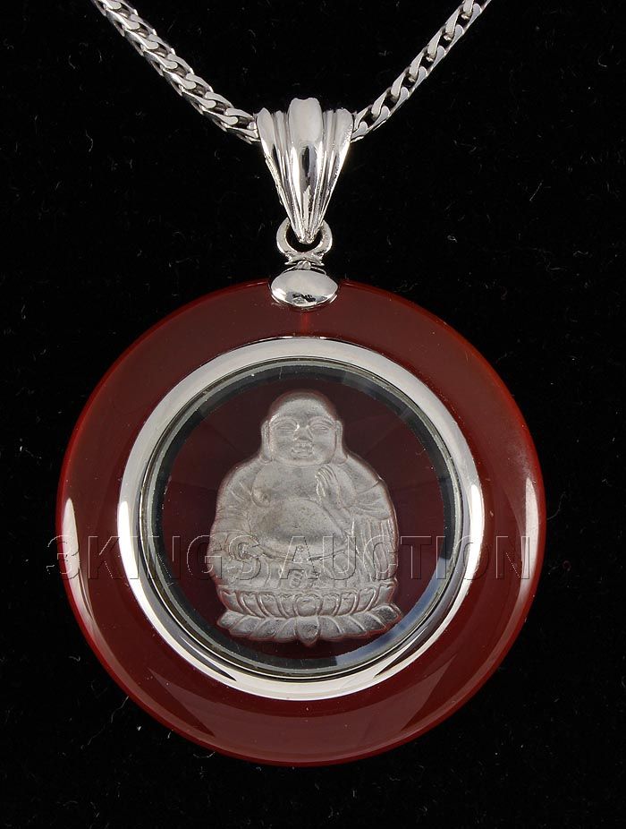SILVER CARNELIAN 60.24CTW SPINNING BUDDHA PENDANT **|**|** 1.18 INCHES SPINNING CIRCLE HAPPY BUDDHA IN NATURAL CARNELIAN PENDANT ; MSRP: $300