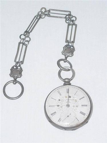 SILVER CASED KEYWIND POCKET WATCH W/ CHAIN;