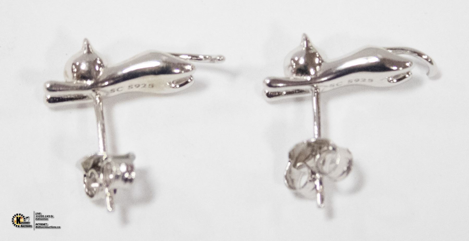 SILVER CAT EARRINGS, COMES WITH ANTI-TARNISH