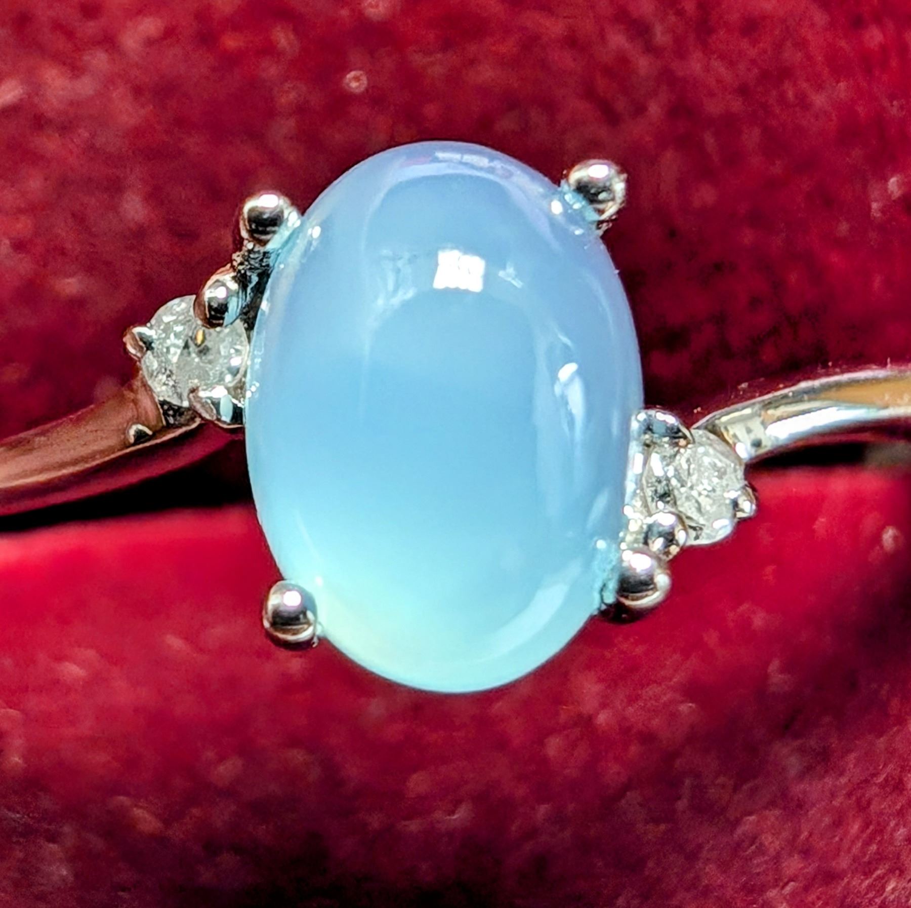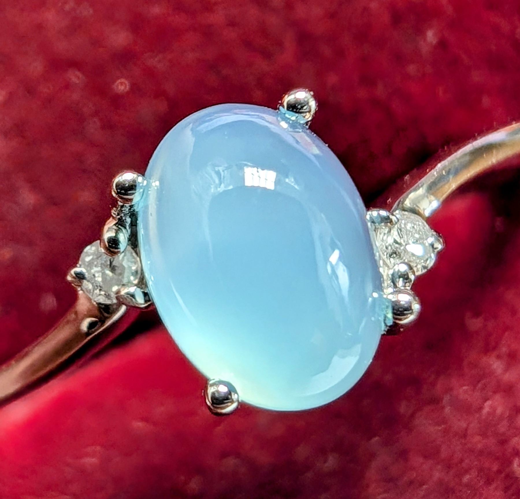SILVER CHALCEDONY AND NATURAL DIAMOND 0.02CT RING