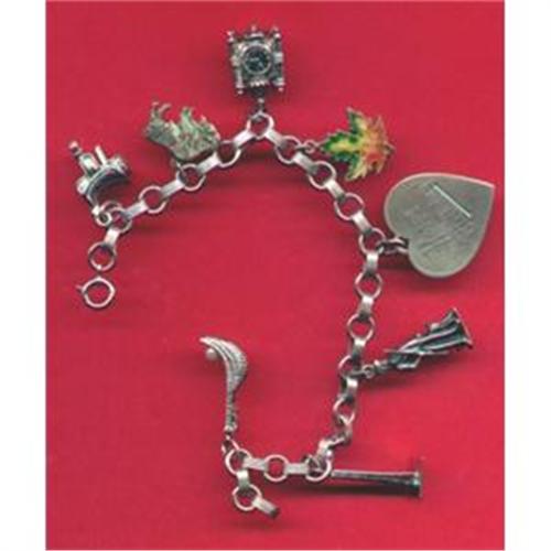 <tr><td>Title:SILVER CHARM BRACELET WITH 8 CHARMS/WORLD TRA</td></tr>