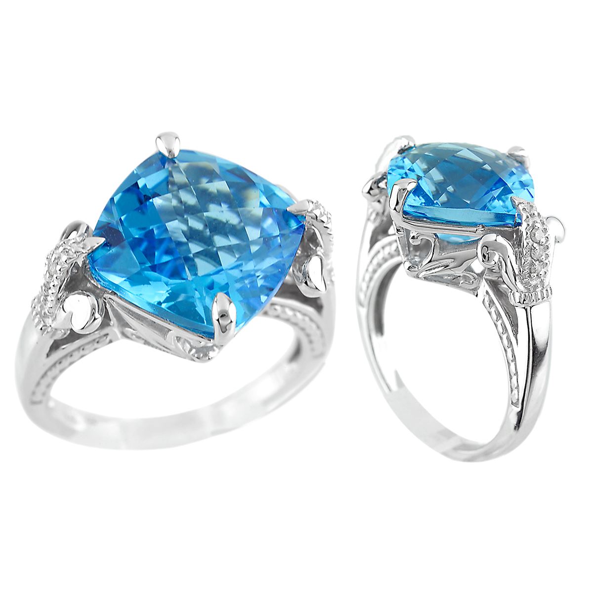 SILVER CHECK SWISS BLUE TOPAZ / DIAMOND RING - Size 7 (#8551SW-CHK) TOTAL CT WEIGHT 7.25