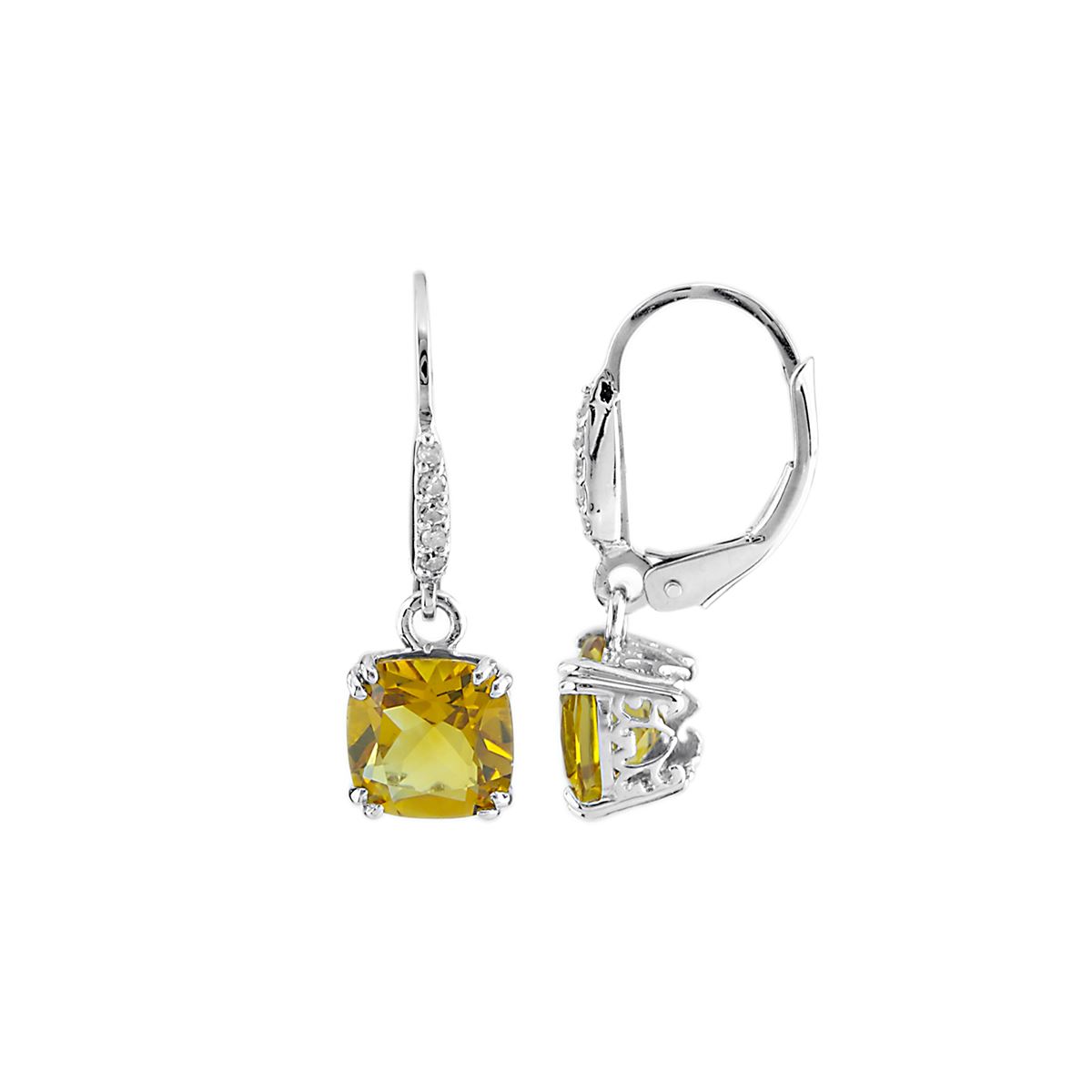 SILVER CITRINE / DIAMOND LEVERBACK EARRINGS (#7063C) TOTAL CT WEIGHT 2.5