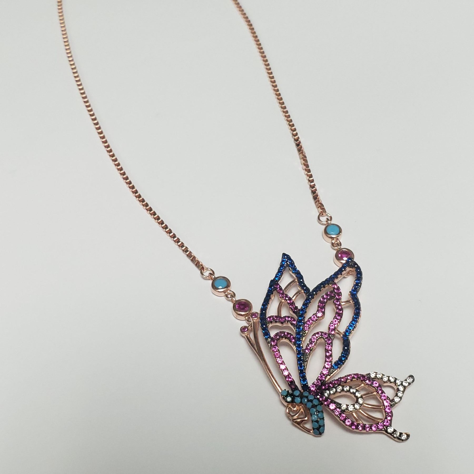 SILVER COLOR CZ ROSE GOLD PLATED 26" NECKLACE