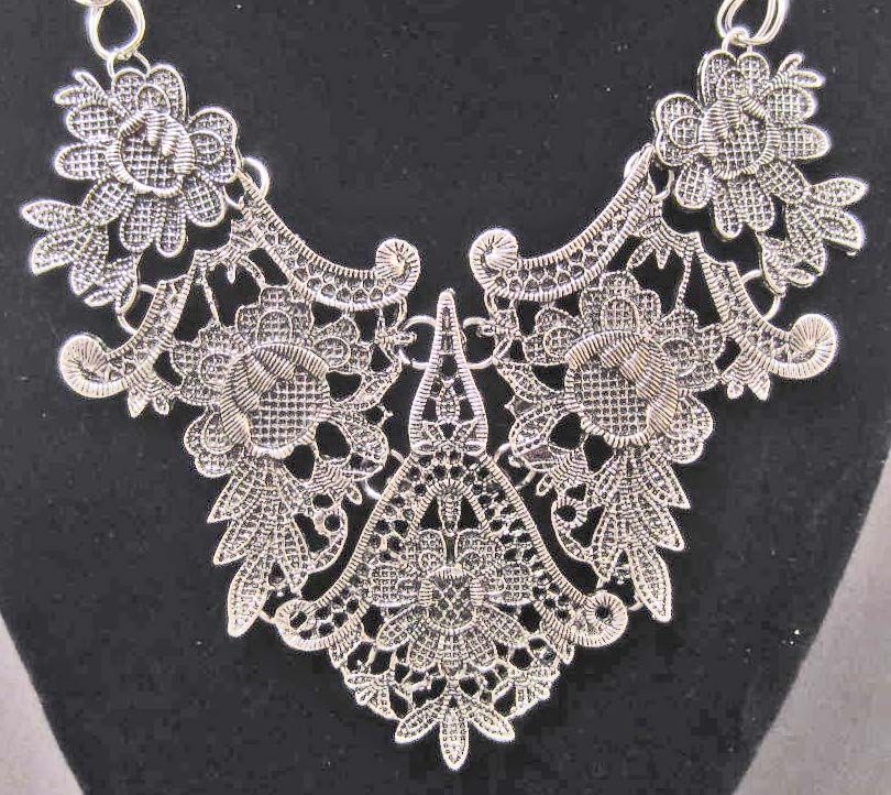 SILVER COLOR FLORAL ESTATE JEWELRY NECKLACE
