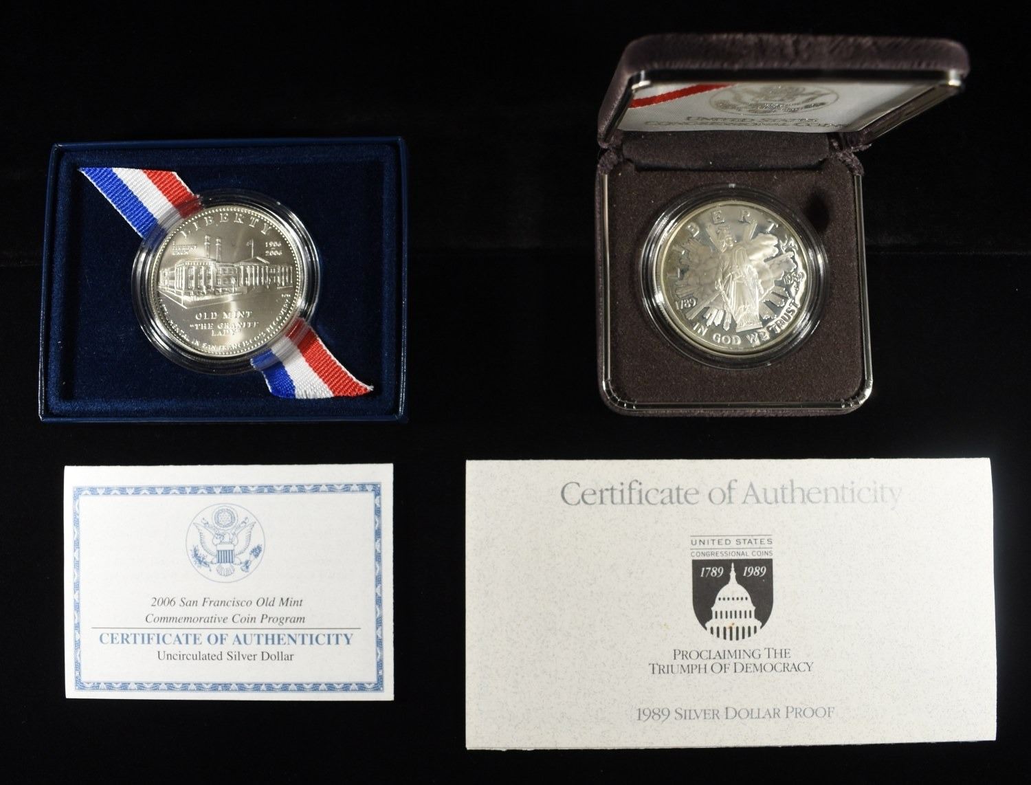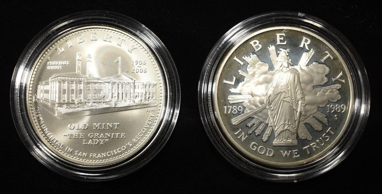 1989 CONGRESSIONAL COMMEM DOLLAR, 2006 SAN FRANCISCO OLD MIN COMMEM DOLLAR ESTIMATE $80 - $120.