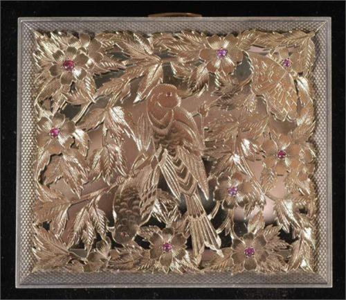 SILVER COMPACT BY BOUCHERON, with gold grill and rubies, mid-20th century