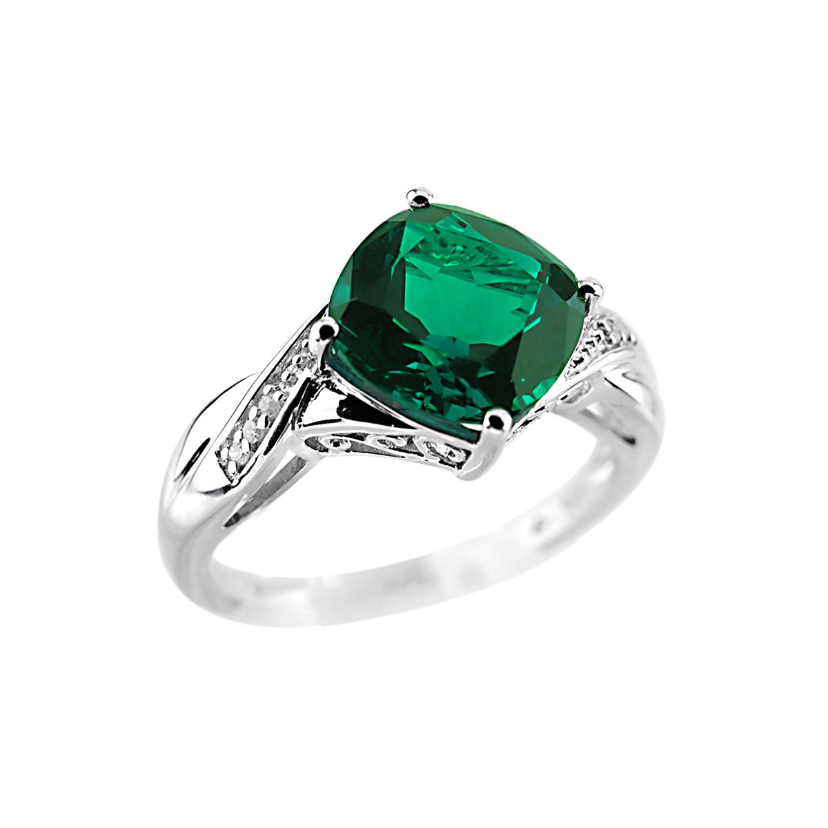SILVER CREATED EMERALD / DIAMOND RING - Size 7 (#8505CR-E) TOTAL CT WEIGHT 2.72