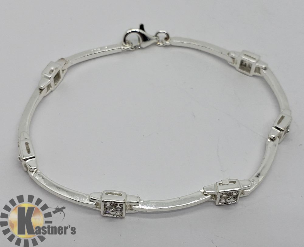 #79-CR173:B100: SILVER CUBIC ZIRCONIA BRACELET. - JEWELRY.
