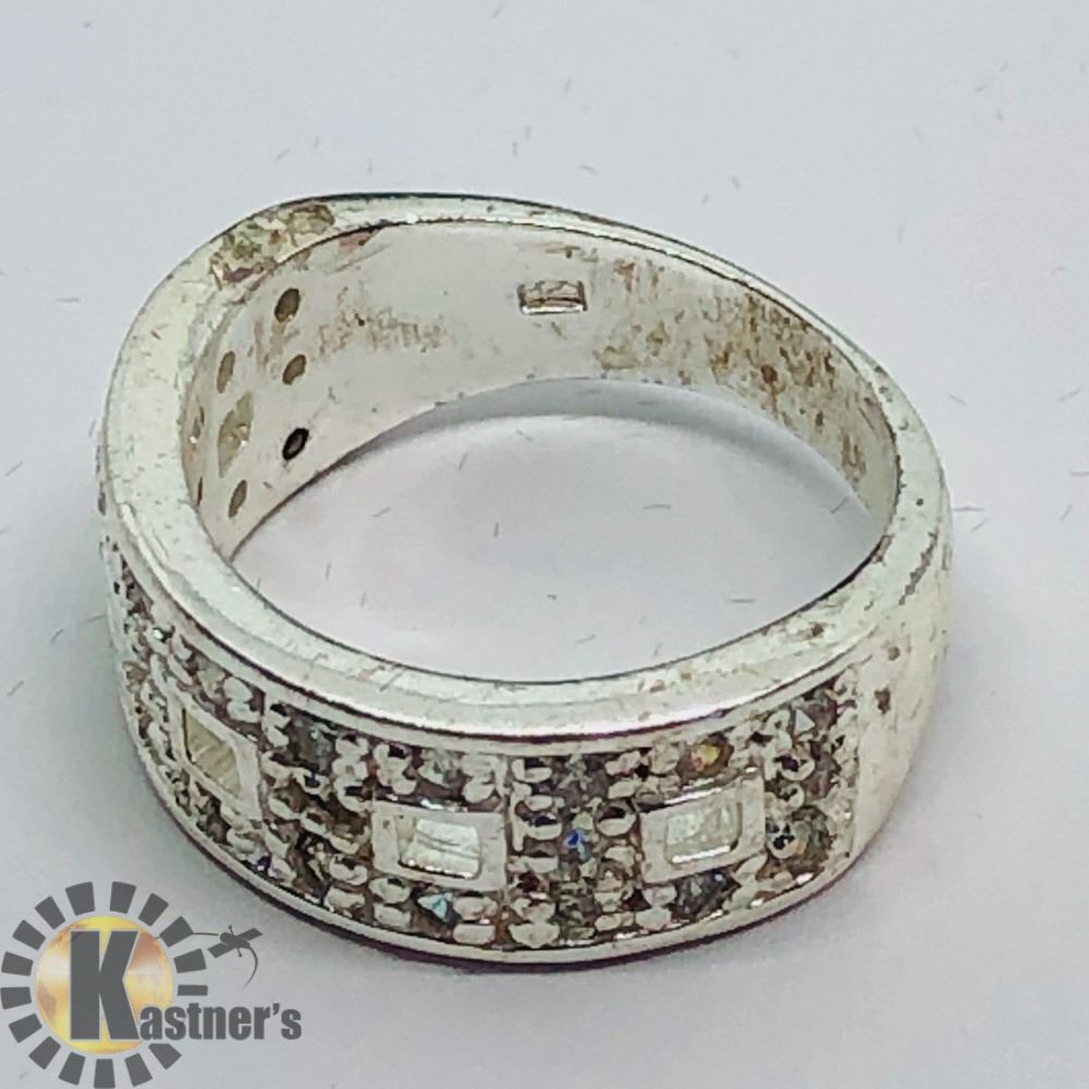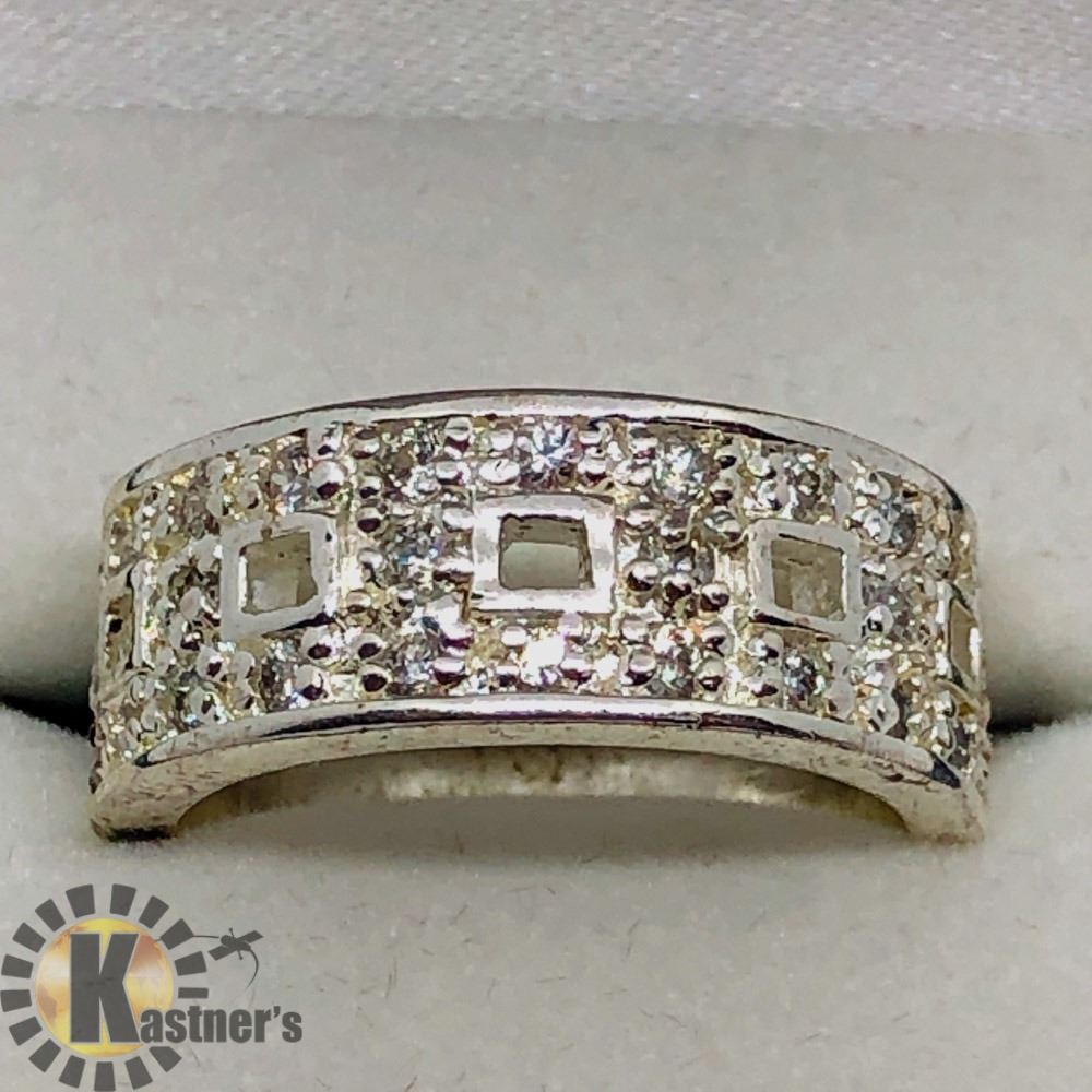 #60-CR173:R75: SILVER CUBIC ZIRCONIA RING. - JEWELRY.