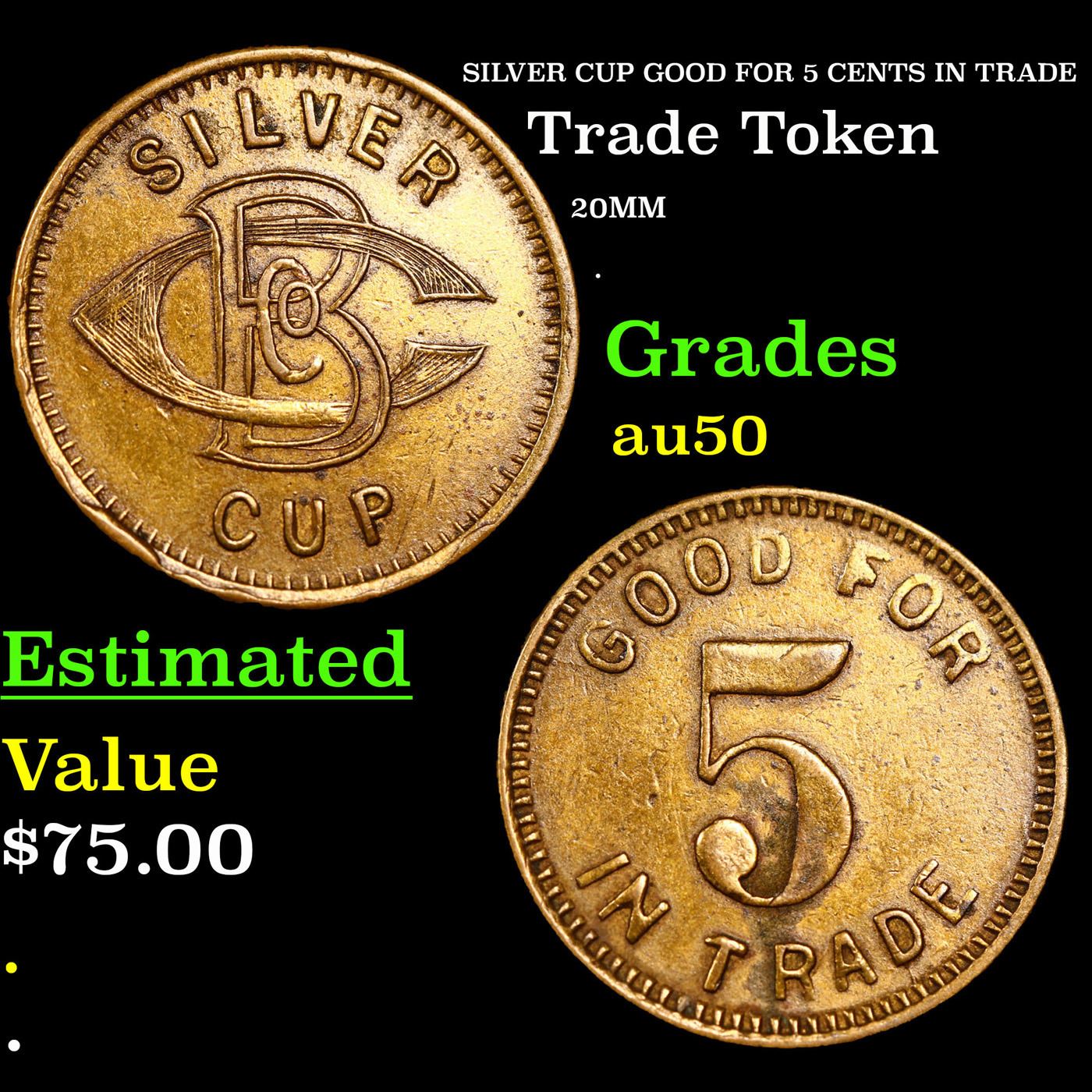 SILVER CUP GOOD FOR 5 CENTS IN TRADE Grades AU, Almost Unc.