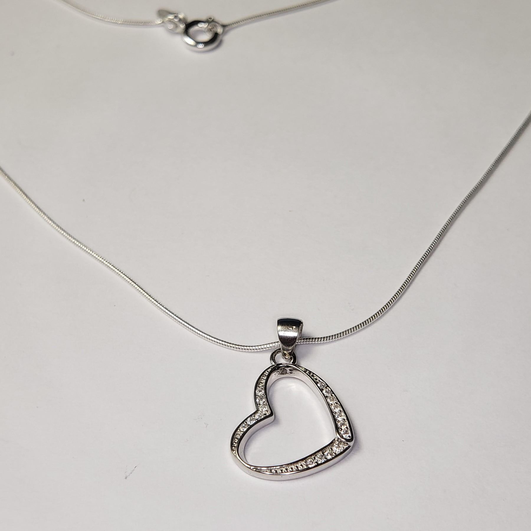 SILVER CZ HEART 19  NECKLACE