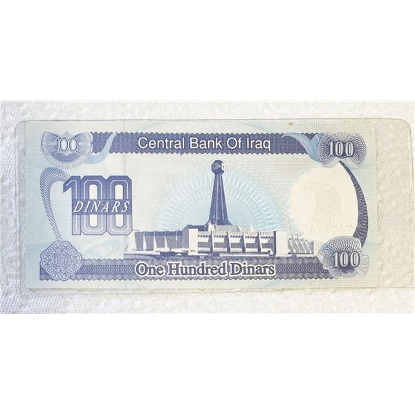 100 Dinars from 1992 Central Bank of Iraq with Saddam Hussein prior to his capture.