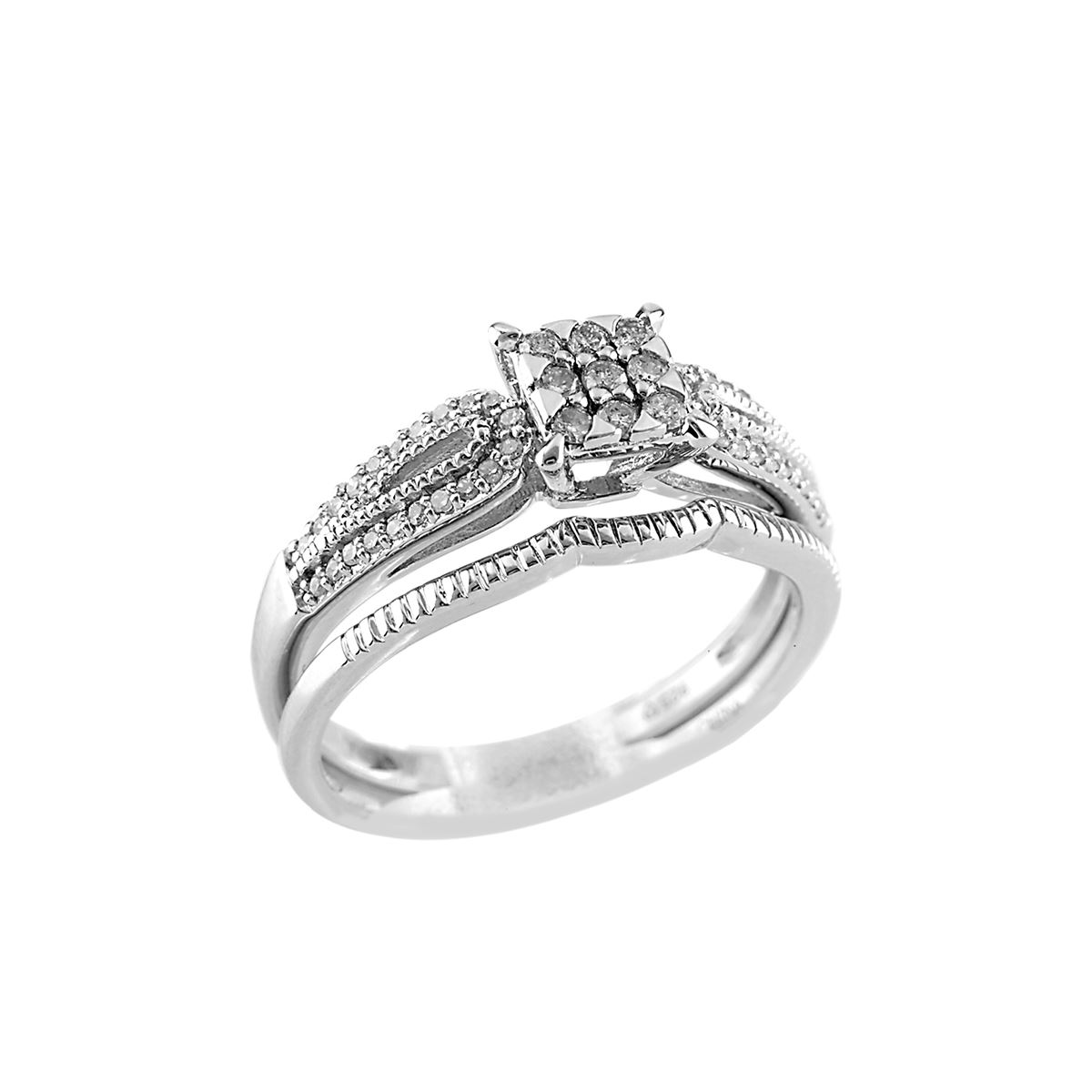 SILVER DIAMOND BRIDAL RING SET - Size 8 (#537D-R3) TOTAL CT WEIGHT