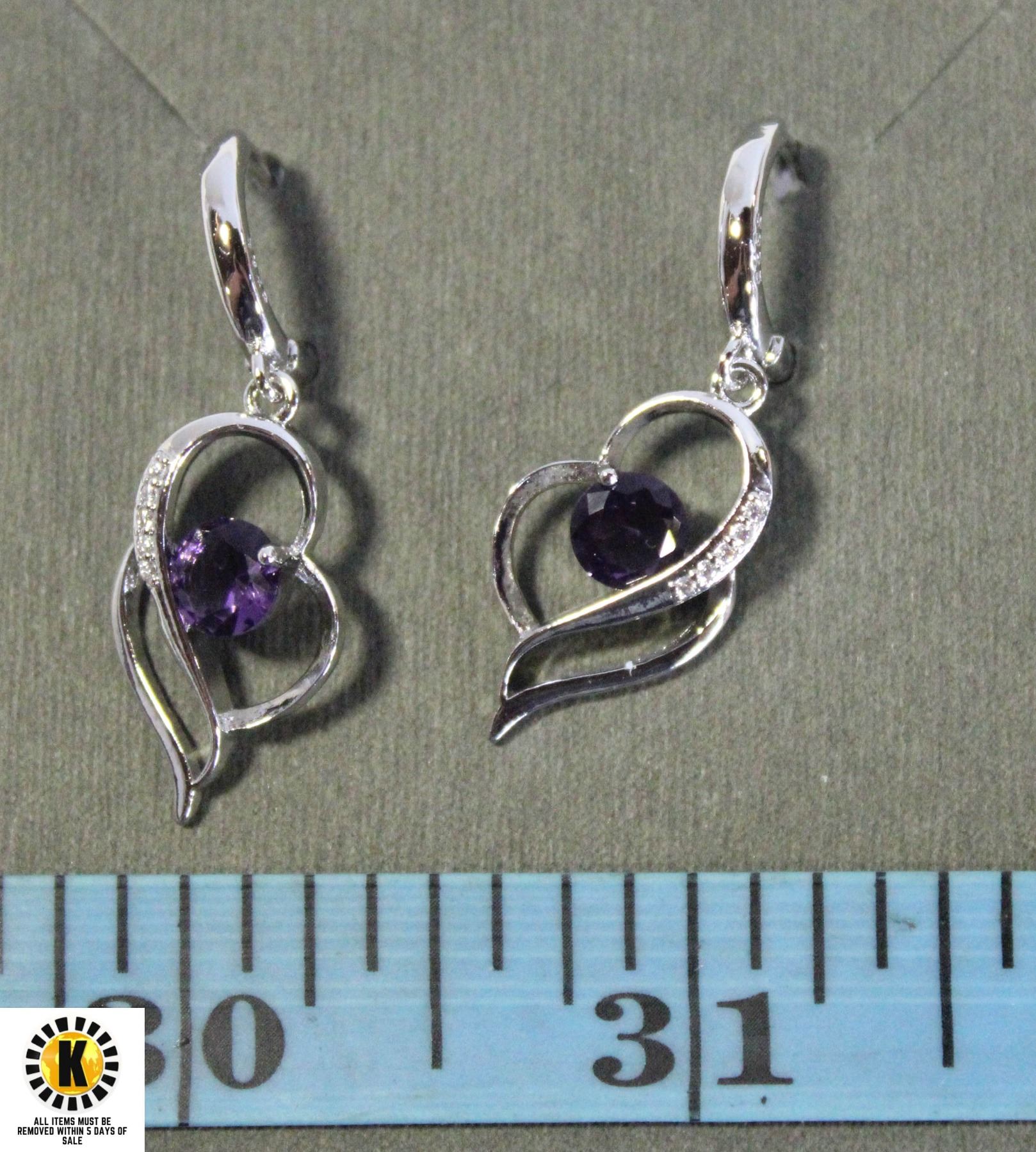 SILVER EARRINGS WITH 0.50 CT PURPLE STONE WITH