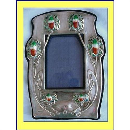 Sterling silver and enamel Art Nouveau picture frame. Highly evocative of the work of C.R. Ashbee and that of Liberty & Co of roughly the same time. Sold to