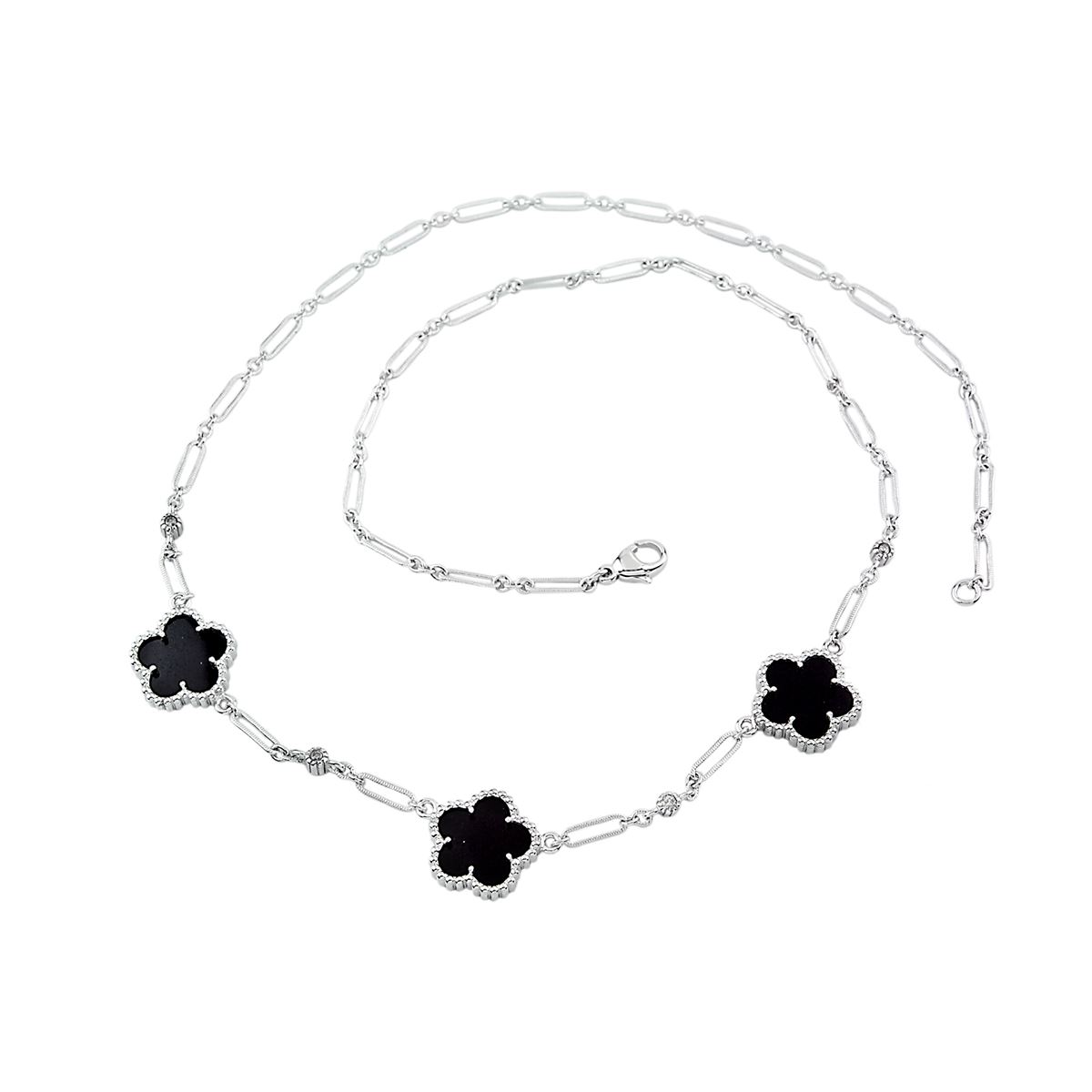 SILVER FLOWER ONYX / DIAMOND NECKLACE - Size 22 (#832ON) TOTAL CT WEIGHT 0.0003