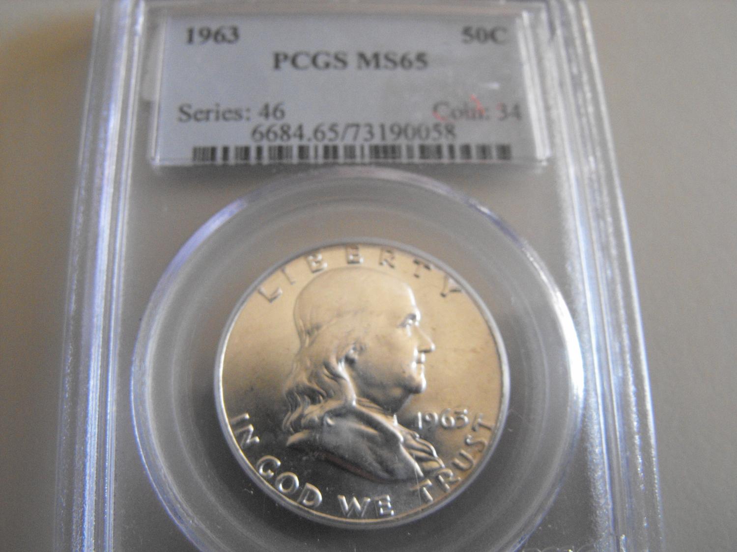 SILVER FRANKLIN 1963 PCGS HALF MS 65 HIGH GRADE